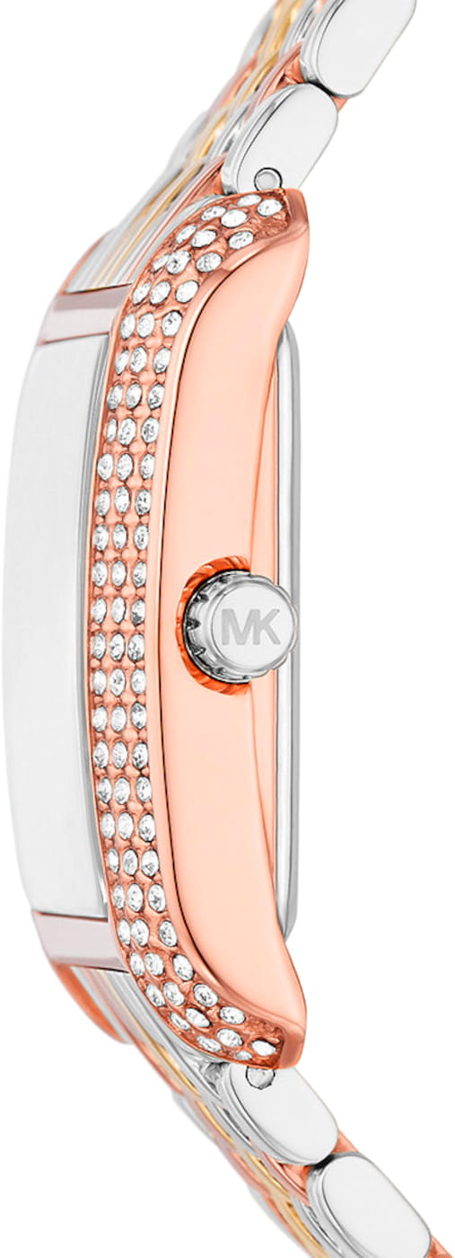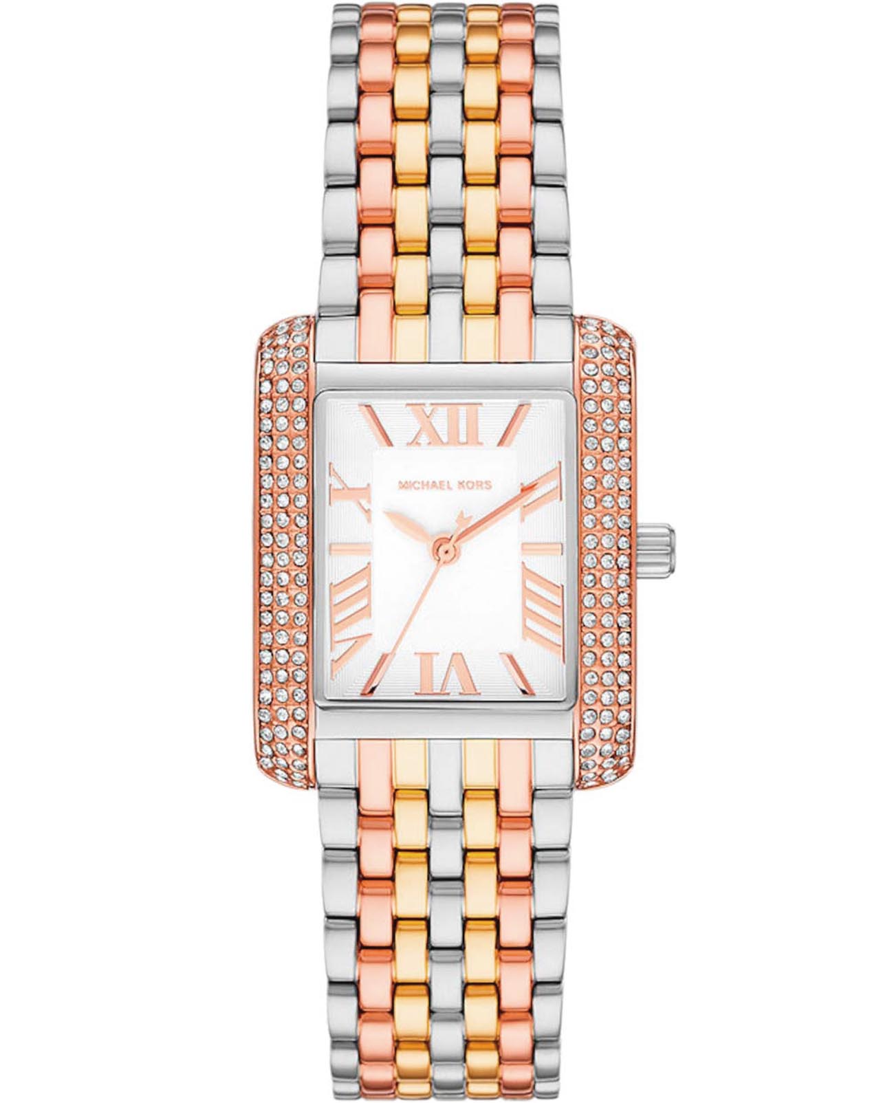 Женские американские наручные часы с минеральным стекломМинеральное стеклоМинеральное стекло представляет собой искусственно выращенный минерал кварца. Такое стекло отличается особой устойчивостью к повреждениям и царапинам. Уступает по некоторым качествам сапфировому стеклу. Michael Kors Emery MK4744, кварцевый механизм с высокой точностью. Минеральное стеклоМинеральное стеклоМинеральное стекло представляет собой искусственно выращенный минерал кварца. Такое стекло отличается особой устойчивостью к повреждениям и царапинам. Уступает по некоторым качествам сапфировому стеклу. устойчивое к появлению царапин, обладающее высокой прозрачностью. Корпус и браслет часов изготовлены из нержавеющей стали с частичным PVD-покрытиемPVDУльтратонкое покрытие наносится в технике вакуумного напыления, сочетает в себе нитрид титана особой прочности со слоем золота или оксида хрома. Несёт в себе декоративную или защитную функцию.. БезельБезельВнешний ободок, закрепляющий стекло. В спортивных часах так называется поворотное кольцо с делениями на циферблате, выполняет роль таймера – замеряет отрезки времени на шкале. Неподвижный безель – элемент декора. Однонаправленно вращающийся безель на дайверских часах позволяет фиксировать моменты погружения и выныривания на поверхность. из нержавеющей стали украшен кристаллами. Класс водозащиты: 50 метров, позволит защитить корпус от случайных брызг или капель дождя. Стальной браслет на раскладной застёжкеРаскладная застёжкаТакой тип застёжки используется только на браслетах из металла. Она никогда не раскрывается полностью, происходит разделение на 2 и более частей. Раскладывающая застёжка снизит вероятность потери часов к минимуму..