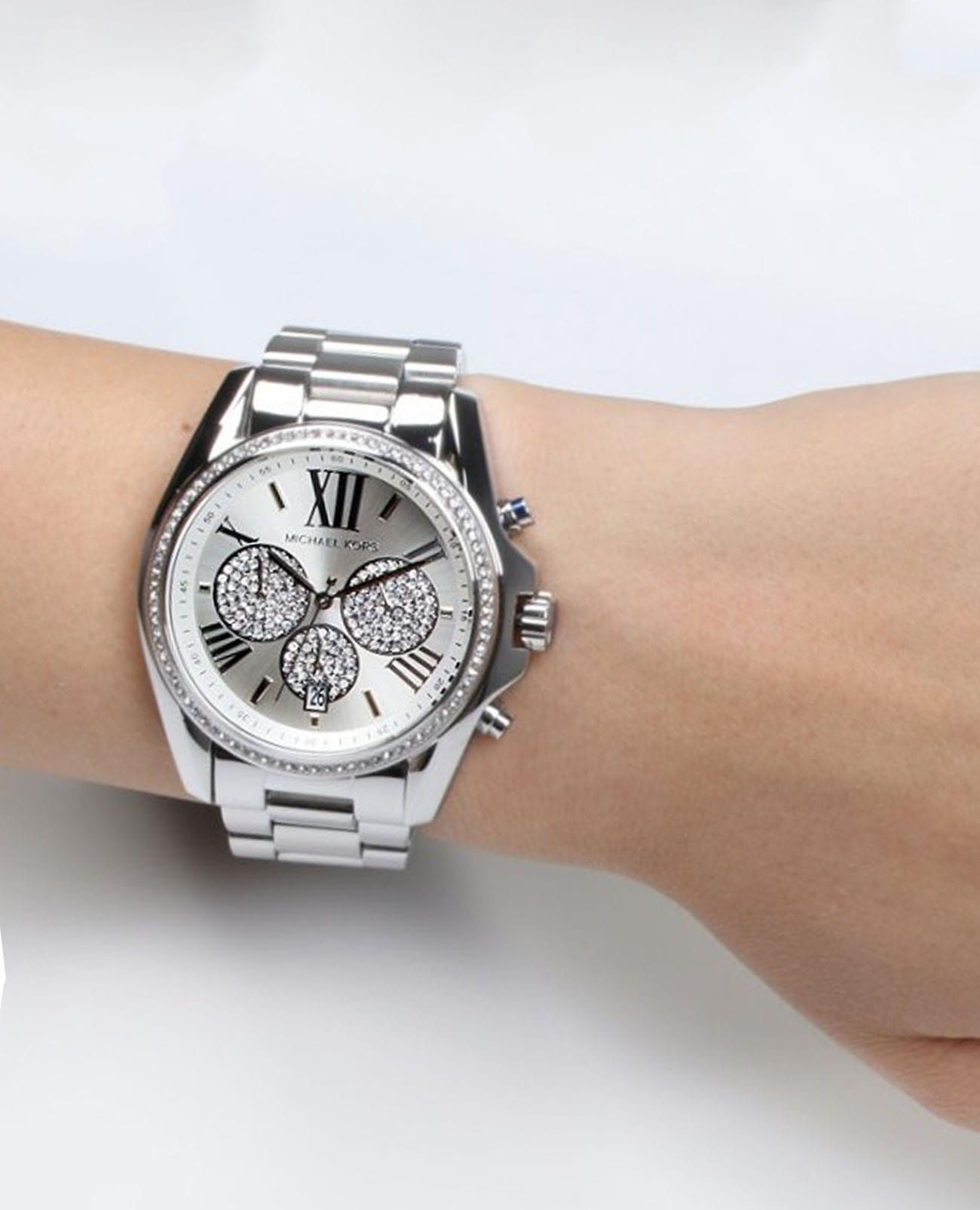 Женские американские часы-хронографХронографФункция позволяет измерять отрезки времени с особой точностью: часы, минуты, секунды. Верным признаком хронографа является наличие на циферблате 3 дополнительных окошек-счётчиков. с секундомеромСекундомерСекундоме́р — прибор, способный измерять интервалы времени с точностью до долей секунды. и с минеральным стекломМинеральное стеклоМинеральное стекло представляет собой искусственно выращенный минерал кварца. Такое стекло отличается особой устойчивостью к повреждениям и царапинам. Уступает по некоторым качествам сапфировому стеклу. Michael Kors Lexington MK6537, кварцевый механизм с высокой точностью. Корпус часов изготовлен из нержавеющей стали. Три дополнительных индикатора на циферблате. 12-ти и 24-х часовой формат. Окошко даты находится в положении 6 часов. Класс водозащиты: 100 метров, позволит плавать, нырять и заниматься другими водными видами спорта. Стальной браслет из нержавеющей стали на раскладной застёжкеРаскладная застёжкаТакой тип застёжки используется только на браслетах из металла. Она никогда не раскрывается полностью, происходит разделение на 2 и более частей. Раскладывающая застёжка снизит вероятность потери часов к минимуму..