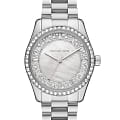 Женские американские часы с минеральным стекломМинеральное стеклоМинеральное стекло представляет собой искусственно выращенный минерал кварца. Такое стекло отличается особой устойчивостью к повреждениям и царапинам. Уступает по некоторым качествам сапфировому стеклу. Michael Kors Lexington MK7445, кварцевый механизм с высокой точностью. Корпус часов изготовлен из нержавеющей стали. БезельБезельВнешний ободок, закрепляющий стекло. В спортивных часах так называется поворотное кольцо с делениями на циферблате, выполняет роль таймера – замеряет отрезки времени на шкале. Неподвижный безель – элемент декора. Однонаправленно вращающийся безель на дайверских часах позволяет фиксировать моменты погружения и выныривания на поверхность. и циферблат украшены кристаллами. Класс водозащиты: 100 метров, позволит плавать, нырять и заниматься другими водными видами спорта. Стальной браслет из нержавеющей стали на раскладной застёжкеРаскладная застёжкаТакой тип застёжки используется только на браслетах из металла. Она никогда не раскрывается полностью, происходит разделение на 2 и более частей. Раскладывающая застёжка снизит вероятность потери часов к минимуму..