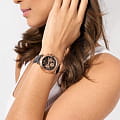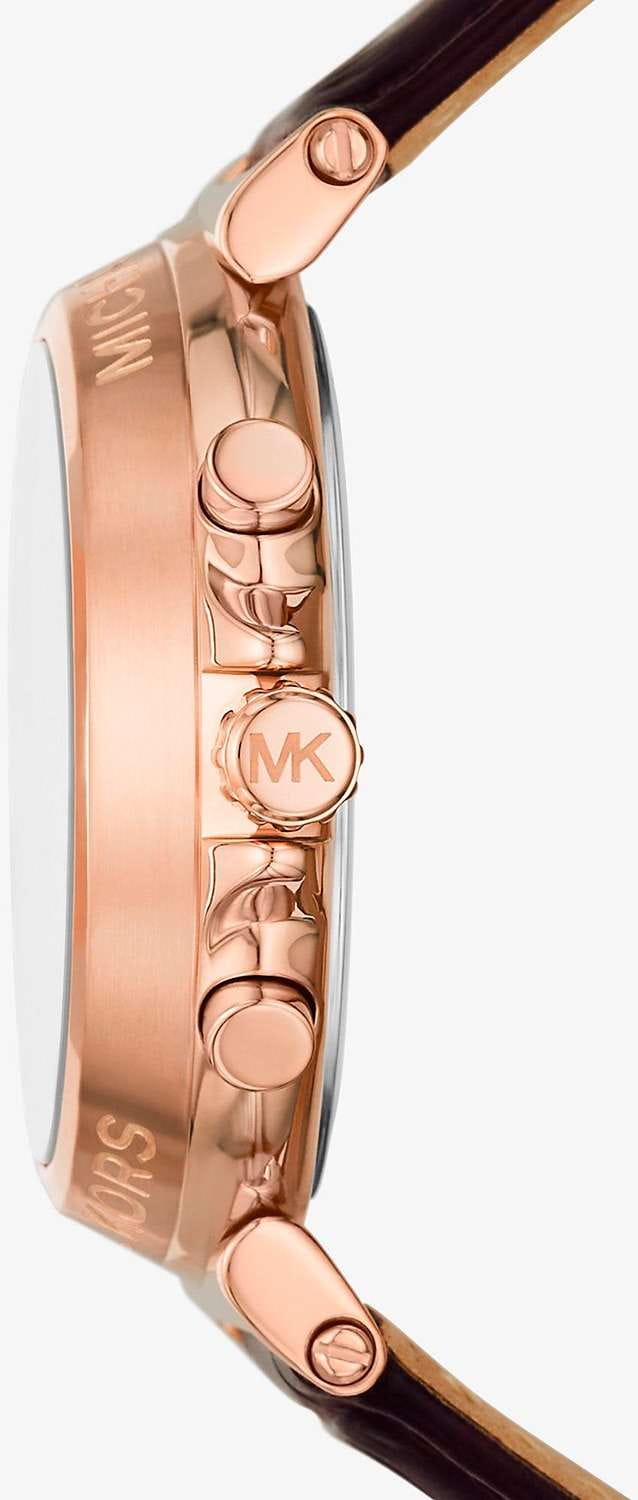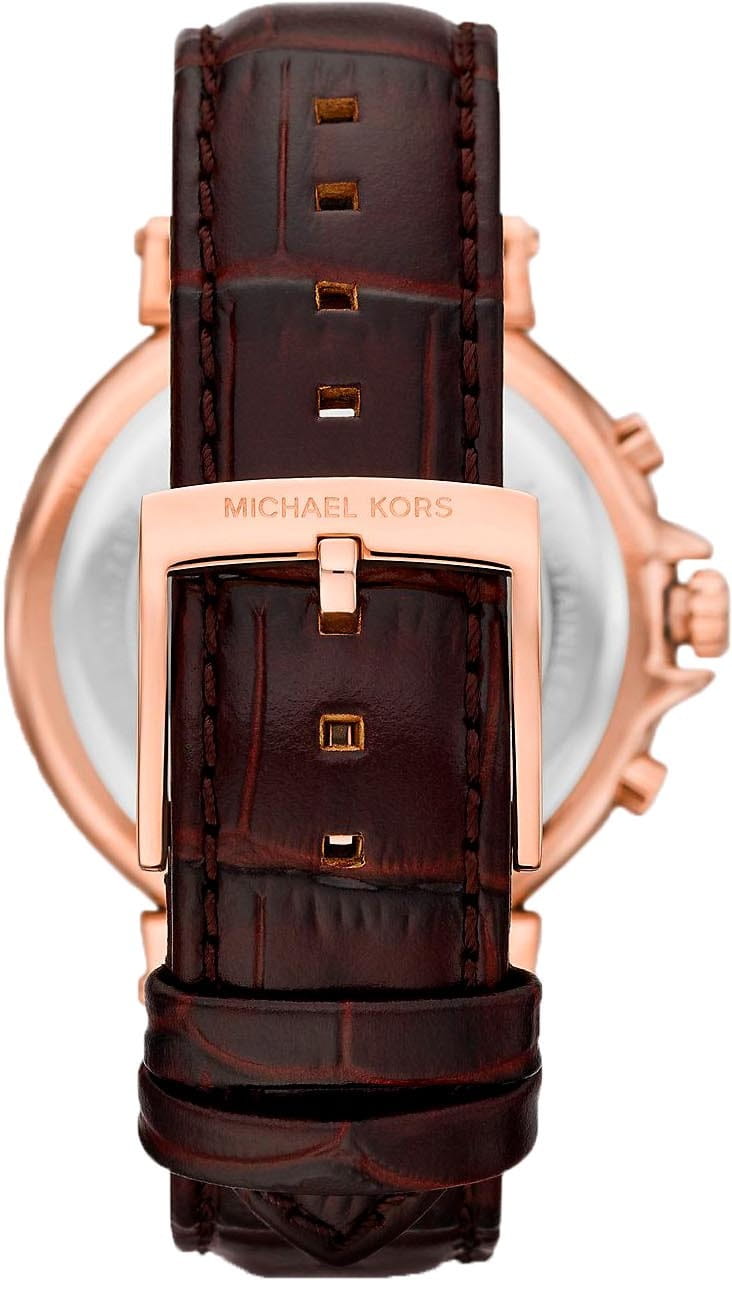 Часы Michael Kors MK7497 — это изысканный аксессуар, который станет прекрасным дополнением к вашему стилю. Эти женские часы-хронографХронографФункция позволяет измерять отрезки времени с особой точностью: часы, минуты, секунды. Верным признаком хронографа является наличие на циферблате 3 дополнительных окошек-счётчиков. с секундомеромСекундомерСекундоме́р — прибор, способный измерять интервалы времени с точностью до долей секунды. оснащены надежным кварцевым механизмом. Круглый корпус из стали с PVD-покрытиемPVDУльтратонкое покрытие наносится в технике вакуумного напыления, сочетает в себе нитрид титана особой прочности со слоем золота или оксида хрома. Несёт в себе декоративную или защитную функцию. цвета розового золота придает изделию элегантность и современность. Циферблат, выполненный по технологии Sunray, создаёт эффект солнечных лучей, а его коричневый оттенок добавляет нежности и утонченности. Минутная шкала, расположенная по краю циферблата, и метки в виде штрихов с арабской цифрой 12 обеспечивают удобство в использовании. Часы поддерживают как 12-ти, так и 24-х часовой формат времени, что делает их функциональными и практичными. Окошко календаря, находящееся между отметками 4 и 5 часов, позволяет всегда быть в курсе текущей даты. БезельБезельВнешний ободок, закрепляющий стекло. В спортивных часах так называется поворотное кольцо с делениями на циферблате, выполняет роль таймера – замеряет отрезки времени на шкале. Неподвижный безель – элемент декора. Однонаправленно вращающийся безель на дайверских часах позволяет фиксировать моменты погружения и выныривания на поверхность. украшен логотипом бренда Michael Kors, подчёркивая престиж и качество изделия. Минеральное стеклоМинеральное стеклоМинеральное стекло представляет собой искусственно выращенный минерал кварца. Такое стекло отличается особой устойчивостью к повреждениям и царапинам. Уступает по некоторым качествам сапфировому стеклу. защищает циферблат от внешних воздействий. Заводная головка с защитой обеспечивает дополнительную надежность. Кожаный коричневый ремешок с тиснением под кожу крокодила с классической застежкой обеспечивает комфорт и безопасность при ношении. Водозащита 50WR позволяет использовать часы в различных условиях, не опасаясь случайных контактов с водой. Этот аксессуар идеально подходит для тех, кто ценит стиль и функциональность в своих повседневных спутниках.