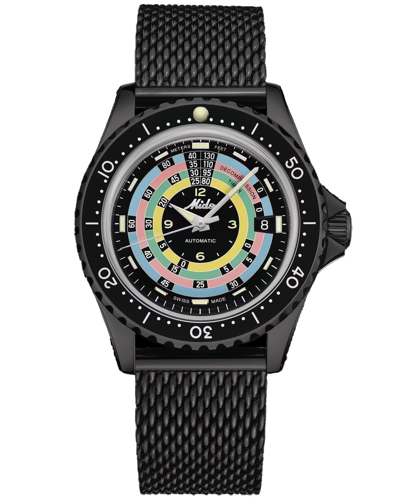 Мужские швейцарские механические часы Mido Ocean Star Decompression Timer 1961 Limited Edition M026.807.33.051.00, автоматический механизм с высокой точностью. Сапфировое стеклоСапфировое стеклоПрочный и надёжный материал из кристалла сапфира синтетического происхождения, характеризующийся особой твёрдостью и устойчивостью к царапинам и повреждениям. устойчивое к появлению царапин, обладающее высокой прозрачностью. Класс водозащиты: 200 метров, позволит плавать, нырять и заниматься другими водными видами спорта. Корпус часов изготовлен из стали с PVD-покрытиемPVDУльтратонкое покрытие наносится в технике вакуумного напыления, сочетает в себе нитрид титана особой прочности со слоем золота или оксида хрома. Несёт в себе декоративную или защитную функцию.. Стальной браслет миланского плетения с PVD-покрытиемPVDУльтратонкое покрытие наносится в технике вакуумного напыления, сочетает в себе нитрид титана особой прочности со слоем золота или оксида хрома. Несёт в себе декоративную или защитную функцию. на раскладном замкеРаскладной замокДанный вариант застежки используется только на часах с металлическим браслетом. Отличительная особенность такого крепления в том, что длина браслета становится универсальной и вы можете самостоятельно отрегулировать нужный вам размер – застежка просто двигается по браслету часов..