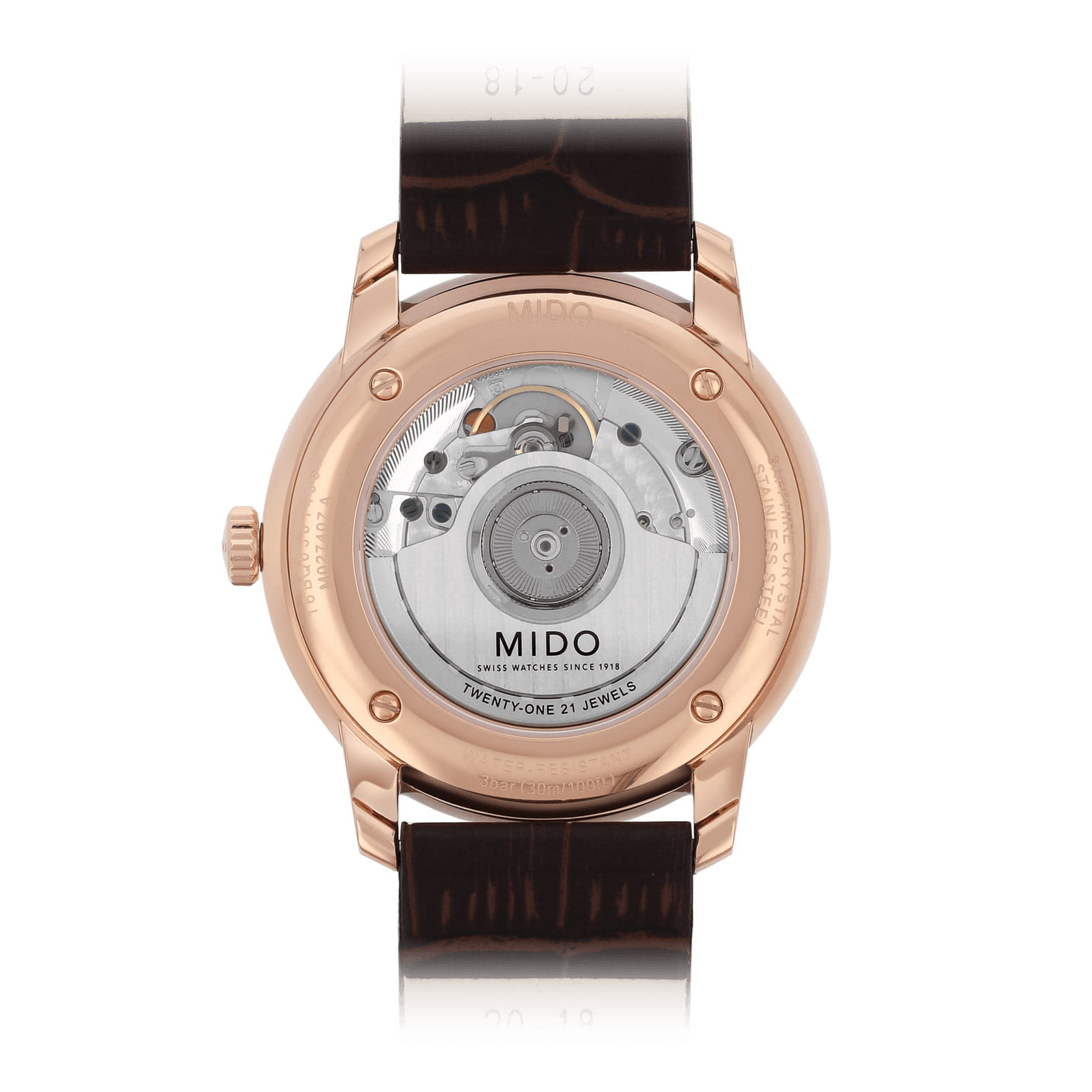 Часы Mido Baroncelli Heritage Gent M027.407.36.080.00 — это элегантный мужской аксессуар, объединяющий классический стиль и современные технологии. Корпус диаметром 39 мм выполнен из нержавеющей стали с розовым PVD-покрытиемPVDУльтратонкое покрытие наносится в технике вакуумного напыления, сочетает в себе нитрид титана особой прочности со слоем золота или оксида хрома. Несёт в себе декоративную или защитную функцию., что придаёт часам изысканный вид. Серый циферблат с розово-золотистыми стрелками и индексами защищён сапфировым стекломСапфировое стеклоПрочный и надёжный материал из кристалла сапфира синтетического происхождения, характеризующийся особой твёрдостью и устойчивостью к царапинам и повреждениям., устойчивым к царапинам.