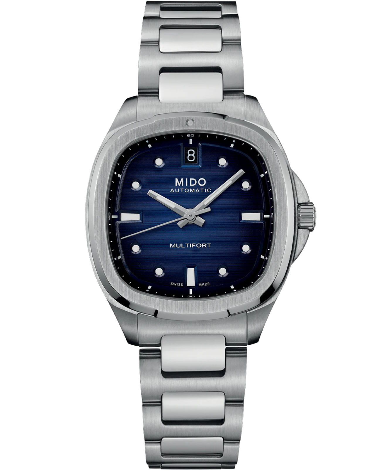 Женские швейцарские механические часы Mido Multifort TV 35 M049.307.11.041.00, механический механизм с высокой точностью. Циферблат c сапфировым стекломСапфировое стеклоПрочный и надёжный материал из кристалла сапфира синтетического происхождения, характеризующийся особой твёрдостью и устойчивостью к царапинам и повреждениям., устойчивым к появлению царапин и обладающее высокой прозрачностью. Класс водозащиты: 100 метров. Корпус часов изготовлен из стали. Часы с балансом из Nivachron™Nivachron™Специально разработанный инновационный сплав Nivachron™ повышает устойчивость часов к воздействию магнитных полей., обеспечивающим высокую устойчивость к магнитным полям и ударам, а также оснащены люминесцентным покрытиемЛюминесцентное покрытиеПозволяет считывать показания времени в темноте. Производители наносят на стрелки, часовые индексы, безель или поверхность циферблата светонакопительный состав, дающий холодное свечение., обеспечивающим отличную видимость даже при слабом освещении. Браслет из стали с раскладной застёжкойРаскладная застёжкаТакой тип застёжки используется только на браслетах из металла. Она никогда не раскрывается полностью, происходит разделение на 2 и более частей. Раскладывающая застёжка снизит вероятность потери часов к минимуму. обеспечивает комфортное ношение. Окошко даты в положении 12 часов.