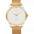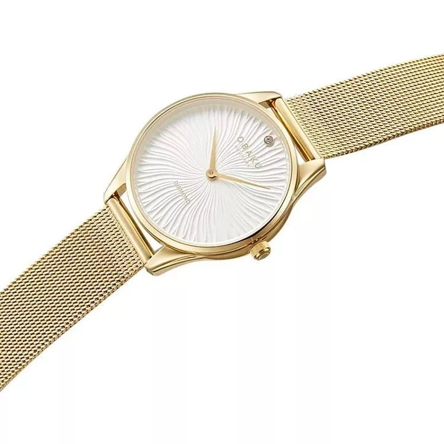 Женские наручные часы Obaku Diamond V297LXGIMG, кварцевый механизм с высокой точностью. Минеральное стеклоМинеральное стеклоМинеральное стекло представляет собой искусственно выращенный минерал кварца. Такое стекло отличается особой устойчивостью к повреждениям и царапинам. Уступает по некоторым качествам сапфировому стеклу. устойчивое к мелким механическим повреждениям. Корпус и браслет часов изготовлены из нержавеющей стали с IP-покрытиемIP-покрытиеМетод ионного напыления. Демонстрирует повышенную устойчивость к истиранию, окислению и химическим веществам. Под воздействием высокого давления и температуры около 1500°C молекулы металла надёжно соединяются с частицами корпуса часов.. Класс водозащиты: 30 метров, позволит защитить корпус от случайных брызг или капель дождя. Стальной браслет миланского плетения на раскладном замкеРаскладной замокДанный вариант застежки используется только на часах с металлическим браслетом. Отличительная особенность такого крепления в том, что длина браслета становится универсальной и вы можете самостоятельно отрегулировать нужный вам размер – застежка просто двигается по браслету часов. с IP-покрытиемIP-покрытиеМетод ионного напыления. Демонстрирует повышенную устойчивость к истиранию, окислению и химическим веществам. Под воздействием высокого давления и температуры около 1500°C молекулы металла надёжно соединяются с частицами корпуса часов.. Часы украшены бриллиантом.