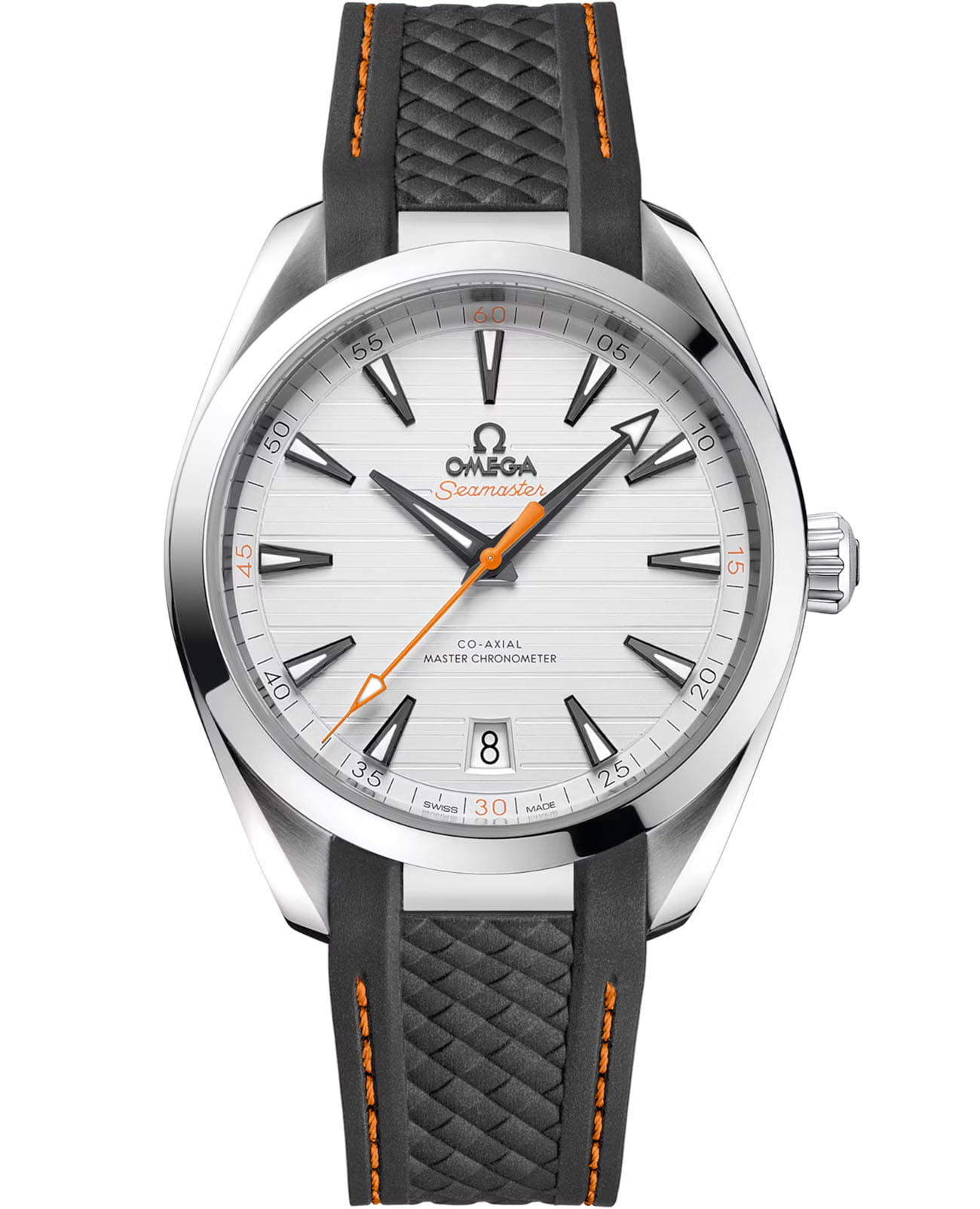 Omega Seamaster Aqua Terra выполнены в симметричном корпусе из нержавеющей стали с завинчивающейся задней крышкой, украшенной волновым узором. Циферблат дополнен окошком даты на 6 часах и оформлен в виде горизонтального рисунка, вдохновлённого текстурой тикового дерева палуб яхт. Стрелки и метки оснащены люминесцентным покрытиемЛюминесцентное покрытиеПозволяет считывать показания времени в темноте. Производители наносят на стрелки, часовые индексы, безель или поверхность циферблата светонакопительный состав, дающий холодное свечение. Super-LumiNova для лучшей читаемости в темноте. Калибр Omega 8900 сертифицирован как Master Chronometer — гарантия высочайшей точности и устойчивости к магнитным полям. Запас хода составляет 60 часов. Защиту циферблата обеспечивает сапфировое стеклоСапфировое стеклоПрочный и надёжный материал из кристалла сапфира синтетического происхождения, характеризующийся особой твёрдостью и устойчивостью к царапинам и повреждениям. с антибликовым покрытиемАнтибликовое покрытиеСлой оксида металла в 0,13-0,3 микрон, благодаря которому стекло часов не бликует и не отражает свет. Антибликовое покрытие уменьшает отражение света в 10 раз, обеспечивая отличную читаемость показателей циферблата.. Водозащита позволяет использовать часы в воде без риска повреждения. Часы установлены на структурированный резиновый ремешок с дополнительным стальным звеном для интеграции с корпусом. Вес модели — около 107 грамм. Это сочетание премиального качества, технологичности и классического дизайна.
