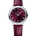 Коллекция OMEGA De Ville Prestige, сохраняющая свою актуальность с 1994 года, предстает в третьем поколении. Эти часы продолжают быть символом классического дизайна и утонченной элегантности. Модели, которые привлекают внимание разнообразием узоров, отделок и цветов, идеально подходят для людей с различными стилями жизни и характерами. Часы в корпусе диаметром 27,5 мм из нержавеющей стали имеют циферблат с PVD-покрытиемPVDУльтратонкое покрытие наносится в технике вакуумного напыления, сочетает в себе нитрид титана особой прочности со слоем золота или оксида хрома. Несёт в себе декоративную или защитную функцию. фиолетово-бордового цвета и радиальным сатинированием. На циферблате расположены стрелки с родиевым покрытием, а также чередующиеся римские цифры и метки из бриллиантов. Изделие с лаконичным дизайном дополнено задней крышкой, украшенной рельефным медальоном с изображением бога времени Хроноса. Часы представлены с переливающимся кожаным ремешком бордового цвета. Модель оснащена кварцевым механизмом OMEGA 4061, который обеспечивает срок службы элемента питания не менее 48 месяцев.