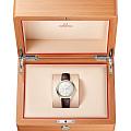 имеют выпуклый серебристый циферблат, украшенный рельефным произвольным вертикальным узором с радиальным сатинированием. На циферблате расположены стрелки с покрытием из желтого золота18-каратное золотоОбозначение по каратной системе пробирования, оно показывает, сколько драгоценного металла содержится в изделии. 18 карат - в составе 75% чистого золота, соответствует 750 пробе.