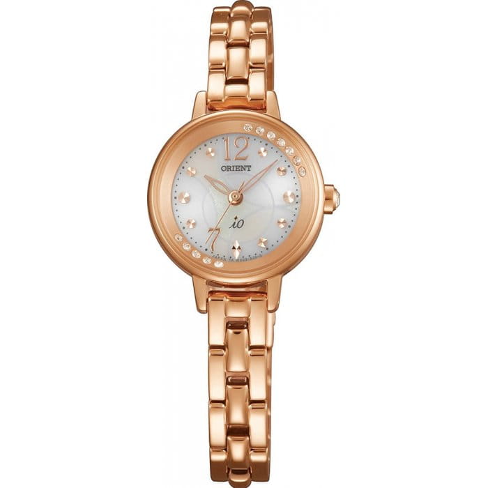 Часы на солнечной батарее;  WR 50; Женские; Минеральное стекло; Браслет и корпус из нержавеющей стали с покрытием розовое золото.