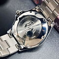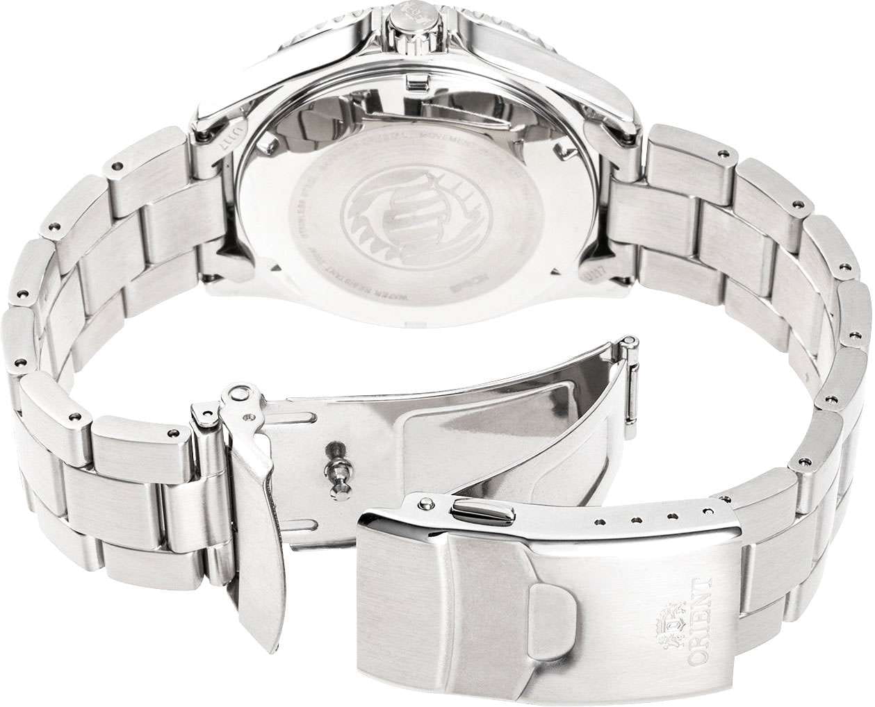 Orient Kamasu RA-AA0814R — стильные и надёжные часы, созданные для активного образа жизни и водных приключений. Корпус диаметром 41,8 мм выполнен из нержавеющей стали, что обеспечивает прочность и долговечность. Однонаправленный вращающийся безельБезельВнешний ободок, закрепляющий стекло. В спортивных часах так называется поворотное кольцо с делениями на циферблате, выполняет роль таймера – замеряет отрезки времени на шкале. Неподвижный безель – элемент декора. Однонаправленно вращающийся безель на дайверских часах позволяет фиксировать моменты погружения и выныривания на поверхность. с 60-минутной шкалой позволяет точно отслеживать время погружения. Красный циферблат с эффектом солнечных лучей украшен накладными часовыми индексами и стрелками с люминесцентным покрытиемЛюминесцентное покрытиеПозволяет считывать показания времени в темноте. Производители наносят на стрелки, часовые индексы, безель или поверхность циферблата светонакопительный состав, дающий холодное свечение., что гарантирует отличную читаемость в любых условиях. Окошки даты и дня недели расположены на отметке «3 часа» для удобства. Защиту циферблата обеспечивает сапфировое стеклоСапфировое стеклоПрочный и надёжный материал из кристалла сапфира синтетического происхождения, характеризующийся особой твёрдостью и устойчивостью к царапинам и повреждениям., устойчивое к царапинам. Внутри установлен автоматический механизм Orient калибра F6922 с 22 камнями, обеспечивающий точность хода и запас энергии до 40 часов. Механизм поддерживает автоподзавод, ручной завод и стоп-секунду. Часы укомплектованы браслетом из нержавеющей стали, а раскладная застёжкаРаскладная застёжкаТакой тип застёжки используется только на браслетах из металла. Она никогда не раскрывается полностью, происходит разделение на 2 и более частей. Раскладывающая застёжка снизит вероятность потери часов к минимуму. гарантирует надёжную фиксацию на запястье. Водонепроницаемость 200 метров делает модель отличным выбором для дайвинга и активного отдыха.