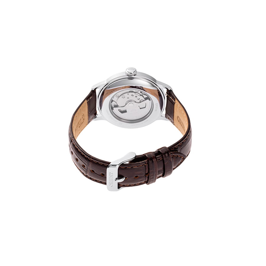 Японские мужские часы Orient Classic Automatic RA-AC0023E — это воплощение классического стиля и надежного механизма. Модель сочетает в себе традиции японского часового мастерства с современным дизайном, делая ее идеальным аксессуаром для повседневной носки. Механизм часов механический с автоподзаводом, который также подразумевает возможность ручного завода. Запас хода составляет 40 часов, что обеспечивает длительную работу без необходимости постоянного завода. Центральные стрелки (часовая, минутная и секундная) позволяют легко считывать время, а окошко даты добавляет функциональности. Циферблат украшен часовыми индексами в виде штрихов и цифр, создавая элегантный и читаемый дизайн. Надежная защита циферблата обеспечивается минеральное стеклоМинеральное стеклоМинеральное стекло представляет собой искусственно выращенный минерал кварца. Такое стекло отличается особой устойчивостью к повреждениям и царапинам. Уступает по некоторым качествам сапфировому стеклу., устойчивым к возникновению мелких механических повреждений. Прозрачная задняя крышка открывает вид на сложный механизм, добавляя модели уникальности и привлекательности. Корпус диаметром 41 мм выполнен из нержавеющей стали, что гарантирует долговечность и устойчивость к коррозии. Кожаный ремешок коричневого цвета не только удобен в ношении, но и прекрасно сочетается с любым классическим или повседневным образом. Часы обладают водозащитой WR 30, что позволяет использовать их при случайных брызгах воды, например, во время мытья рук или прогулки под дождем. Коллекция Classic от Orient — это выбор для тех, кто ценит простоту, элегантность и истинное японское качество.