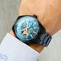 Часы Orient Star Joker Automatic RE-AV0131L — это стильное сочетание современного дизайна и часового мастерства. Корпус из нержавеющей стали с PVD-покрытиемPVDУльтратонкое покрытие наносится в технике вакуумного напыления, сочетает в себе нитрид титана особой прочности со слоем золота или оксида хрома. Несёт в себе декоративную или защитную функцию. диаметром 41 мм защищён сапфировым стекломСапфировое стеклоПрочный и надёжный материал из кристалла сапфира синтетического происхождения, характеризующийся особой твёрдостью и устойчивостью к царапинам и повреждениям.  с антибликовым покрытиемАнтибликовое покрытиеСлой оксида металла в 0,13-0,3 микрон, благодаря которому стекло часов не бликует и не отражает свет. Антибликовое покрытие уменьшает отражение света в 10 раз, обеспечивая отличную читаемость показателей циферблата., что обеспечивает отличную видимость и защиту от царапин. Синий циферблат с открытыми элементами на отметках «9», «2» и «6 часов» позволяет наблюдать за изысканной работой механизма. Люминесцентные стрелки и меткиЛюминесцентное покрытиеПозволяет считывать показания времени в темноте. Производители наносят на стрелки, часовые индексы, безель или поверхность циферблата светонакопительный состав, дающий холодное свечение. обеспечивают превосходную читаемость даже в условиях низкой освещённости. Внутри установлен автоматический механизм Orient Calibre F6F44, который обеспечивает точность хода. Прозрачная задняя крышка добавляют функциональности и эстетического удовольствия. Браслет из нержавеющей стали с PVD-покрытиемPVDУльтратонкое покрытие наносится в технике вакуумного напыления, сочетает в себе нитрид титана особой прочности со слоем золота или оксида хрома. Несёт в себе декоративную или защитную функцию. оснащён раскладной застёжкойРаскладная застёжкаТакой тип застёжки используется только на браслетах из металла. Она никогда не раскрывается полностью, происходит разделение на 2 и более частей. Раскладывающая застёжка снизит вероятность потери часов к минимуму., что обеспечивает удобство и надёжность. Водонепроницаемость до 100 метров делает часы подходящими для плавания и активного использования. Orient Star Joker Automatic RE-AV0131L — это выбор для тех, кто ценит утончённость, стиль и высочайшее качество.