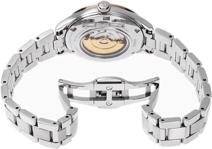Женские механические часы с автоподзаводом Orient RE-ND0020L0 — японская надёжность и элегантный дизайн с открытой сердцевиной механизма. Корпус из нержавеющей стали, диаметром 30,5 мм. БезельБезельВнешний ободок, закрепляющий стекло. В спортивных часах так называется поворотное кольцо с делениями на циферблате, выполняет роль таймера – замеряет отрезки времени на шкале. Неподвижный безель – элемент декора. Однонаправленно вращающийся безель на дайверских часах позволяет фиксировать моменты погружения и выныривания на поверхность. из нержавеющей стали с IP-покрытиемIP-покрытиеМетод ионного напыления. Демонстрирует повышенную устойчивость к истиранию, окислению и химическим веществам. Под воздействием высокого давления и температуры около 1500°C молекулы металла надёжно соединяются с частицами корпуса часов.. Циферблат — голубой градиентный с римскими цифрами. Стекло — минеральноеМинеральное стеклоМинеральное стекло представляет собой искусственно выращенный минерал кварца. Такое стекло отличается особой устойчивостью к повреждениям и царапинам. Уступает по некоторым качествам сапфировому стеклу., устойчивое к мелким повреждениям. Браслет стальной на застёжке «бабочка» с кнопкамиЗастёжка "бабочка"Такой вид застёжки дополняется предохранителями, помогающими избежать случайного раскрытия браслета. Обладают изящным исполнением. . Водонепроницаемость 50 м. Идеальный выбор для тех, кто ценит японское качество и изысканный стиль.