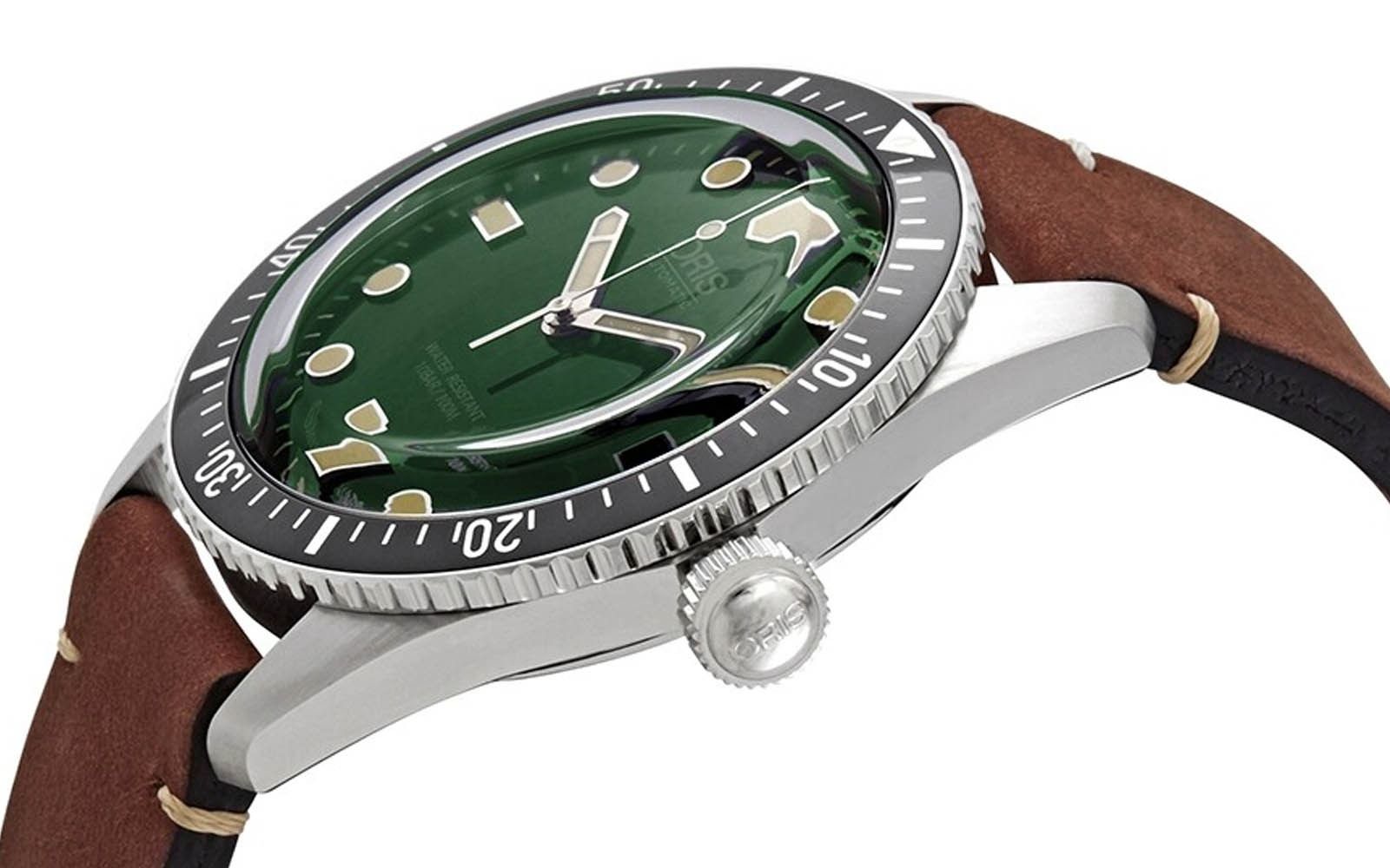 Швейцарские мужские часы ORIS Divers Sixty-Five. Корпус выполнен из высококачественной нержавеющей стали, что обеспечивает прочность и долговечность. Циферблат с традиционными стрелками и метками в виде штрихов защищен устойчивым к царапинам сапфировым стеклом с антибликовым покрытиемСапфировое стеклоПрочный и надёжный материал из кристалла сапфира синтетического происхождения, характеризующийся особой твёрдостью и устойчивостью к царапинам и повреждениям., обеспечивающим отличную читаемость показаний в любых условиях. Механизм Oris 733 — это автоматический механизм с автоподзаводом, который гарантирует точность хода и надежность работы. Функционал включает центральные часовые, минутные и секундные стрелки, окошко даты с быстрым переводом, а также функцию stop-second для точной настройки времени. Запас хода механизма составляет 41 час. Стрелки и метки имеют люминесцентное покрытиеЛюминесцентное покрытиеПозволяет считывать показания времени в темноте. Производители наносят на стрелки, часовые индексы, безель или поверхность циферблата светонакопительный состав, дающий холодное свечение., которое позволяет легко определять время даже в темноте. Поворотный безель из нержавеющей стали с PVD-покрытиемPVDУльтратонкое покрытие наносится в технике вакуумного напыления, сочетает в себе нитрид титана особой прочности со слоем золота или оксида хрома. Несёт в себе декоративную или защитную функцию. помогает точно отслеживать промежутки времени. Водозащита до 100 метров (WR100) делает эти часы идеальными для плавания и других водных видов спорта. Кожаный ремешок на стандартной застёжке.