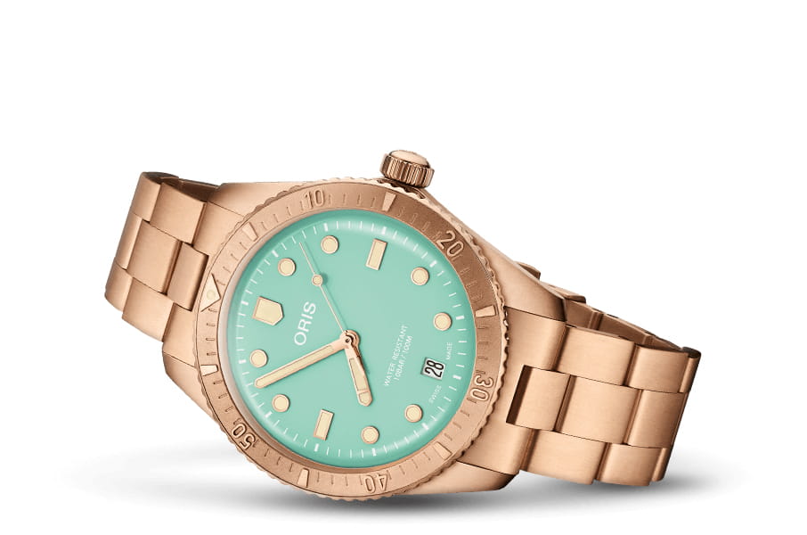 Часы Divers Sixty-Five "Cotton Candy" - это маяк радости. Корпус, безель, заводная головка и браслет полностью выполнены из бронзы, а циферблат окрашен в яркие цвета. Часы в 38-миллиметровом корпусе унисекс оснащены механизмом Swiss Made. Эти часы символизируют оптимизм и лучшие времена.