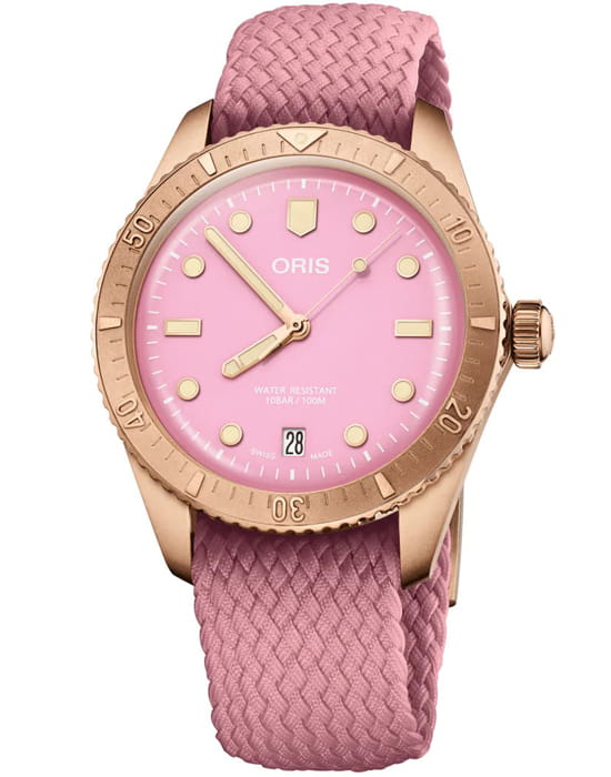 Швейцарские женские механические часы Oris Divers Sixty‑Five 'Cotton Candy' 01 733 7771 3158-07 3 19 04BRS