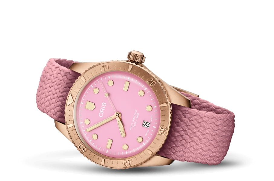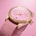 Часы Divers Sixty-Five "Cotton Candy" - это маяк радости. Корпус, безель, заводная головка полностью выполнены из бронзы, а циферблат окрашен в яркие цвета. Часы в 38-миллиметровом корпусе унисекс оснащены механизмом Swiss Made. Эти часы символизируют оптимизм и лучшие времена.