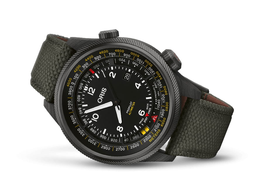 ProPilot Altimeter - единственные в мире часы с автоматическим механическим механизмом и встроенным механическим альтиметром. Он может измерять высоту над уровнем моря до 6 000 метров. Часы имеют 47-миллиметровый корпус из углеродного волокна и тканевый ремешок, а их вес составляет всего 98 граммов.