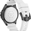 Эти необычные часы, воплощающие в себе уникальное сочетание узнаваемости бренда и непредсказуемости, каждый день будут напоминать вам о том, что нет таких целей, которых вы не смогли бы достичь. Мужские часы с японским кварцевым механизмом. Стальной корпус с чёрным IP-покрытиемIP-покрытиеМетод ионного напыления. Демонстрирует повышенную устойчивость к истиранию, окислению и химическим веществам. Под воздействием высокого давления и температуры около 1500°C молекулы металла надёжно соединяются с частицами корпуса часов.. БезельБезельВнешний ободок, закрепляющий стекло. В спортивных часах так называется поворотное кольцо с делениями на циферблате, выполняет роль таймера – замеряет отрезки времени на шкале. Неподвижный безель – элемент декора. Однонаправленно вращающийся безель на дайверских часах позволяет фиксировать моменты погружения и выныривания на поверхность. украшен шестиугольными логотипами бренда, расположенными симметрично слева и справа, сверху украшен символичным логотипом Philipp Plein, а снизу украшен названием коллекции ''The Skull''. Метки в виде штрихов. Высокопрочное минеральное стеклоМинеральное стеклоМинеральное стекло представляет собой искусственно выращенный минерал кварца. Такое стекло отличается особой устойчивостью к повреждениям и царапинам. Уступает по некоторым качествам сапфировому стеклу.. Граненая заводная головка с защитой. Белый силиконовый ремешок с классической застежкой украшен объемным черепом и стальной вставкой. Фирменная дизайнерская упаковка.