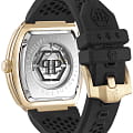 Мужские механические часы-скелетоны Philipp Plein The Skeleton PWBAA1623. Корпус часов изготовлен из нержавеющей стали с IP-покрытиемIP-покрытиеМетод ионного напыления. Демонстрирует повышенную устойчивость к истиранию, окислению и химическим веществам. Под воздействием высокого давления и температуры около 1500°C молекулы металла надёжно соединяются с частицами корпуса часов.. Минеральное стеклоМинеральное стеклоМинеральное стекло представляет собой искусственно выращенный минерал кварца. Такое стекло отличается особой устойчивостью к повреждениям и царапинам. Уступает по некоторым качествам сапфировому стеклу. устойчивое к мелким механическим повреждениям. Влагозащита: 50 метров, позволит защитить корпус от случайных брызг или капель дождя. Стрелки с люминесцентным покрытиемЛюминесцентное покрытиеПозволяет считывать показания времени в темноте. Производители наносят на стрелки, часовые индексы, безель или поверхность циферблата светонакопительный состав, дающий холодное свечение.. Практичный ремешок из силикона на стандартной застёжке. БезельБезельВнешний ободок, закрепляющий стекло. В спортивных часах так называется поворотное кольцо с делениями на циферблате, выполняет роль таймера – замеряет отрезки времени на шкале. Неподвижный безель – элемент декора. Однонаправленно вращающийся безель на дайверских часах позволяет фиксировать моменты погружения и выныривания на поверхность. и циферблат инкрустированы цветными кристаллами Preciosa.