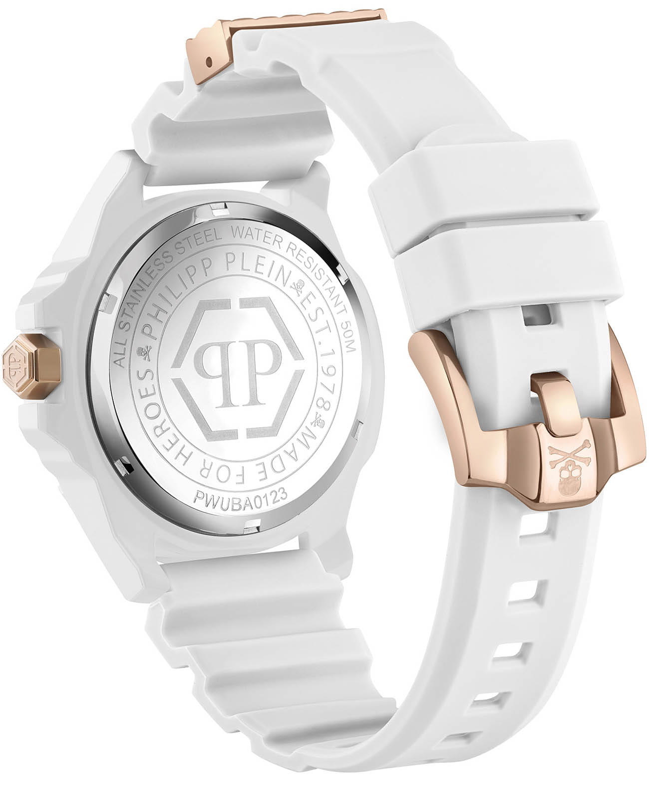 Мужские часы Philipp Plein The Skull Ecoceramic PWUBA0123, кварцевый механизм с высокой точностью. Класс водозащиты: 50 метров, позволит защитить корпус от случайных брызг или капель дождя. Корпус часов изготовлен из экокерамики. Минеральное стеклоМинеральное стеклоМинеральное стекло представляет собой искусственно выращенный минерал кварца. Такое стекло отличается особой устойчивостью к повреждениям и царапинам. Уступает по некоторым качествам сапфировому стеклу. устойчивое к мелким механическим повреждениям. Стрелки с люминесцентным покрытиемЛюминесцентное покрытиеПозволяет считывать показания времени в темноте. Производители наносят на стрелки, часовые индексы, безель или поверхность циферблата светонакопительный состав, дающий холодное свечение..