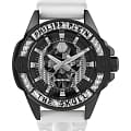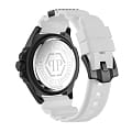 Мужские кварцевые часы со стальным карбоновым покрытием циферблата Philipp Plein The Skull Carbon Fiber PWAAA1822, кварцевый механизм с высокой точностью. Класс водозащиты: 50 метров, позволит защитить корпус от случайных брызг или капель дождя. Круглый корпус выполнен из нержавеющей стали. Заводная головка с защитой. Белый силиконовый ремешок шириной 22 мм, стандартная застежка.