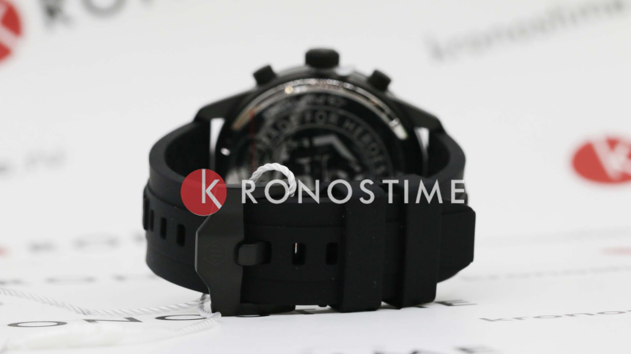 Мужские часы-хронографХронографФункция позволяет измерять отрезки времени с особой точностью: часы, минуты, секунды. Верным признаком хронографа является наличие на циферблате 3 дополнительных окошек-счётчиков. с японским кварцевым механизмом. Стальной корпус с IP-покрытиемIP-покрытиеМетод ионного напыления. Демонстрирует повышенную устойчивость к истиранию, окислению и химическим веществам. Под воздействием высокого давления и температуры около 1500°C молекулы металла надёжно соединяются с частицами корпуса часов.. Метки в виде штрихов. Минеральное стеклоМинеральное стеклоМинеральное стекло представляет собой искусственно выращенный минерал кварца. Такое стекло отличается особой устойчивостью к повреждениям и царапинам. Уступает по некоторым качествам сапфировому стеклу. устойчивое к мелким механическим повреждениям. Фирменная дизайнерская упаковка. Стрелки и метки с люминесцентным покрытиемЛюминесцентное покрытиеПозволяет считывать показания времени в темноте. Производители наносят на стрелки, часовые индексы, безель или поверхность циферблата светонакопительный состав, дающий холодное свечение.. БезельБезельВнешний ободок, закрепляющий стекло. В спортивных часах так называется поворотное кольцо с делениями на циферблате, выполняет роль таймера – замеряет отрезки времени на шкале. Неподвижный безель – элемент декора. Однонаправленно вращающийся безель на дайверских часах позволяет фиксировать моменты погружения и выныривания на поверхность. с IP-покрытиемIP-покрытиеМетод ионного напыления. Демонстрирует повышенную устойчивость к истиранию, окислению и химическим веществам. Под воздействием высокого давления и температуры около 1500°C молекулы металла надёжно соединяются с частицами корпуса часов.. Силиконовый ремешок на стандартной застёжке.