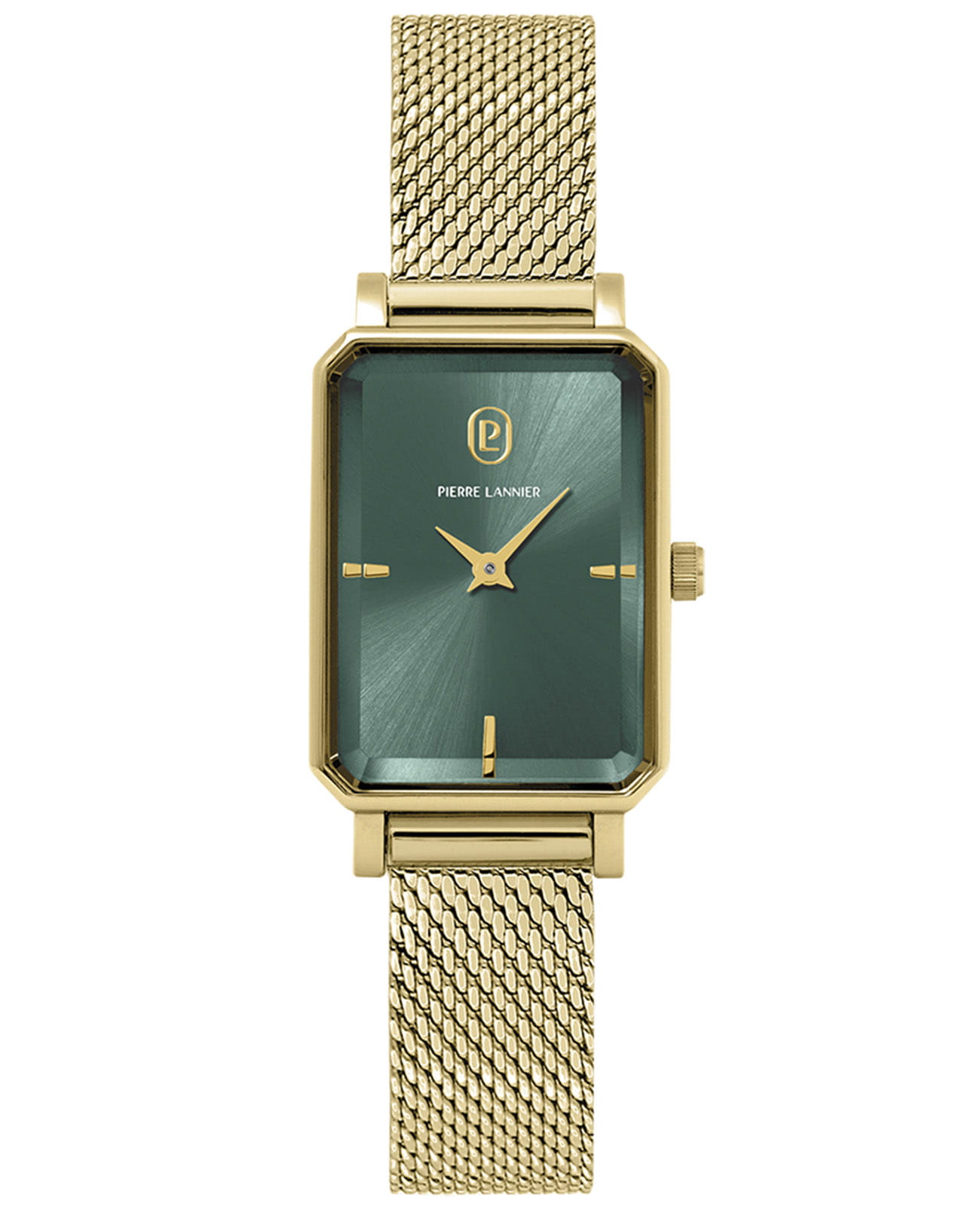Женские кварцевые часы Pierre Lannier 006L572 — это стильный аксессуар, сочетающий элегантность французского дизайна с надёжностью и функциональностью. Корпус прямоугольной формы изготовлен из нержавеющей стали с IP-покрытиемIP-покрытиеМетод ионного напыления. Демонстрирует повышенную устойчивость к истиранию, окислению и химическим веществам. Под воздействием высокого давления и температуры около 1500°C молекулы металла надёжно соединяются с частицами корпуса часов. цвета желтого золота, что придаёт ему благородный внешний вид и устойчивость к царапинам. Его размеры — 21x28,4 мм, а толщина — 7,8 мм, что делает модель удобной для повседневного ношения. Циферблат зелёного цвета дополнен центральными стрелками, а защиту механизма обеспечивает минеральное стеклоМинеральное стеклоМинеральное стекло представляет собой искусственно выращенный минерал кварца. Такое стекло отличается особой устойчивостью к повреждениям и царапинам. Уступает по некоторым качествам сапфировому стеклу., устойчивое к мелким повреждениям. Браслет выполнен в технике миланского плетения из стали с покрытием и оснащён Раскладная застёжкаРаскладная застёжкаТакой тип застёжки используется только на браслетах из металла. Она никогда не раскрывается полностью, происходит разделение на 2 и более частей. Раскладывающая застёжка снизит вероятность потери часов к минимуму., что делает его удобным и практичным. Часы водонепроницаемы до 30 метров (, что позволяет использовать их в повседневных условиях — при мытье рук или под лёгким дождём. Гарантия 2 года подтверждает качество и долговечность изделия. Эти часы станут универсальным аксессуаром для тех, кто ценит сочетание стиля, функциональности и французского качества — идеальный выбор для повседневной носки и торжественных случаев.