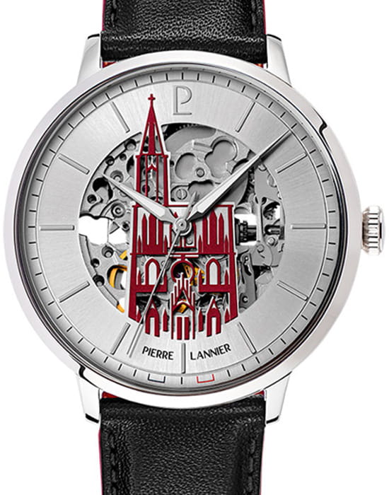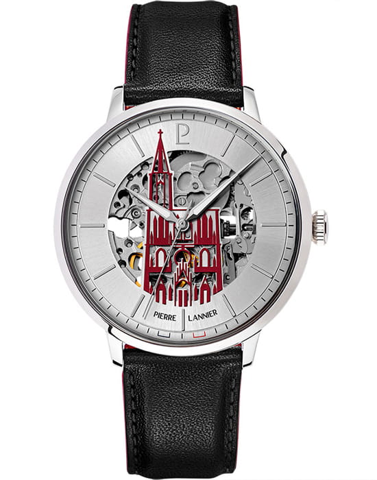 Мужские механические часы с автоподзаводом Pierre Lannier 301F123 — французское мастерство и архитектурная элегантность в скелетонизированном исполнении. Корпус из нержавеющей стали, диаметром 42 мм. Циферблат — серебристый скелетонизированный с изображением кафедрального собора. Стрелки с люминесцентным покрытиемЛюминесцентное покрытиеПозволяет считывать показания времени в темноте. Производители наносят на стрелки, часовые индексы, безель или поверхность циферблата светонакопительный состав, дающий холодное свечение.. Стекло — минеральноеМинеральное стеклоМинеральное стекло представляет собой искусственно выращенный минерал кварца. Такое стекло отличается особой устойчивостью к повреждениям и царапинам. Уступает по некоторым качествам сапфировому стеклу., устойчивое к мелким повреждениям. Кожаный ремешок на стандартной застёжке обеспечивает комфорт. Водонепроницаемость 50 м. Идеальный выбор для тех, кто ценит французский дизайн и архитектурное вдохновение.