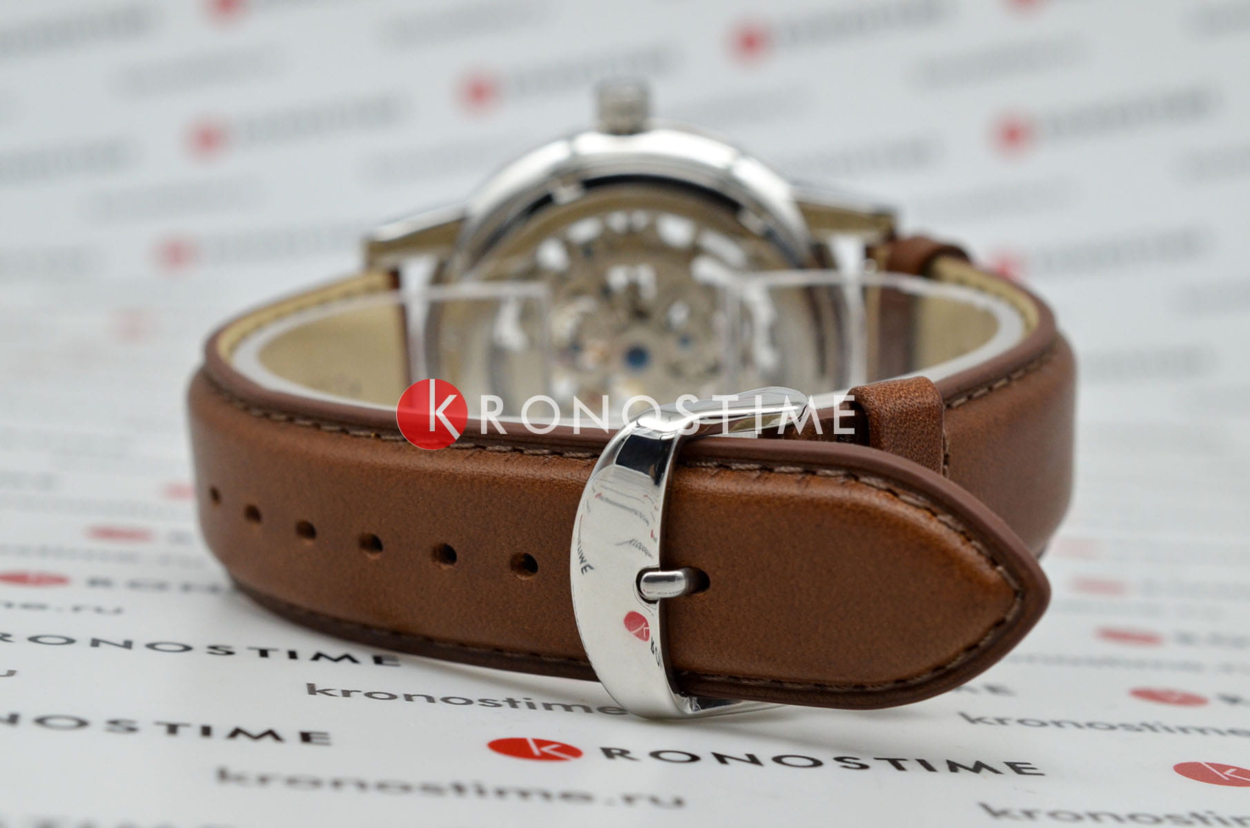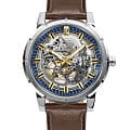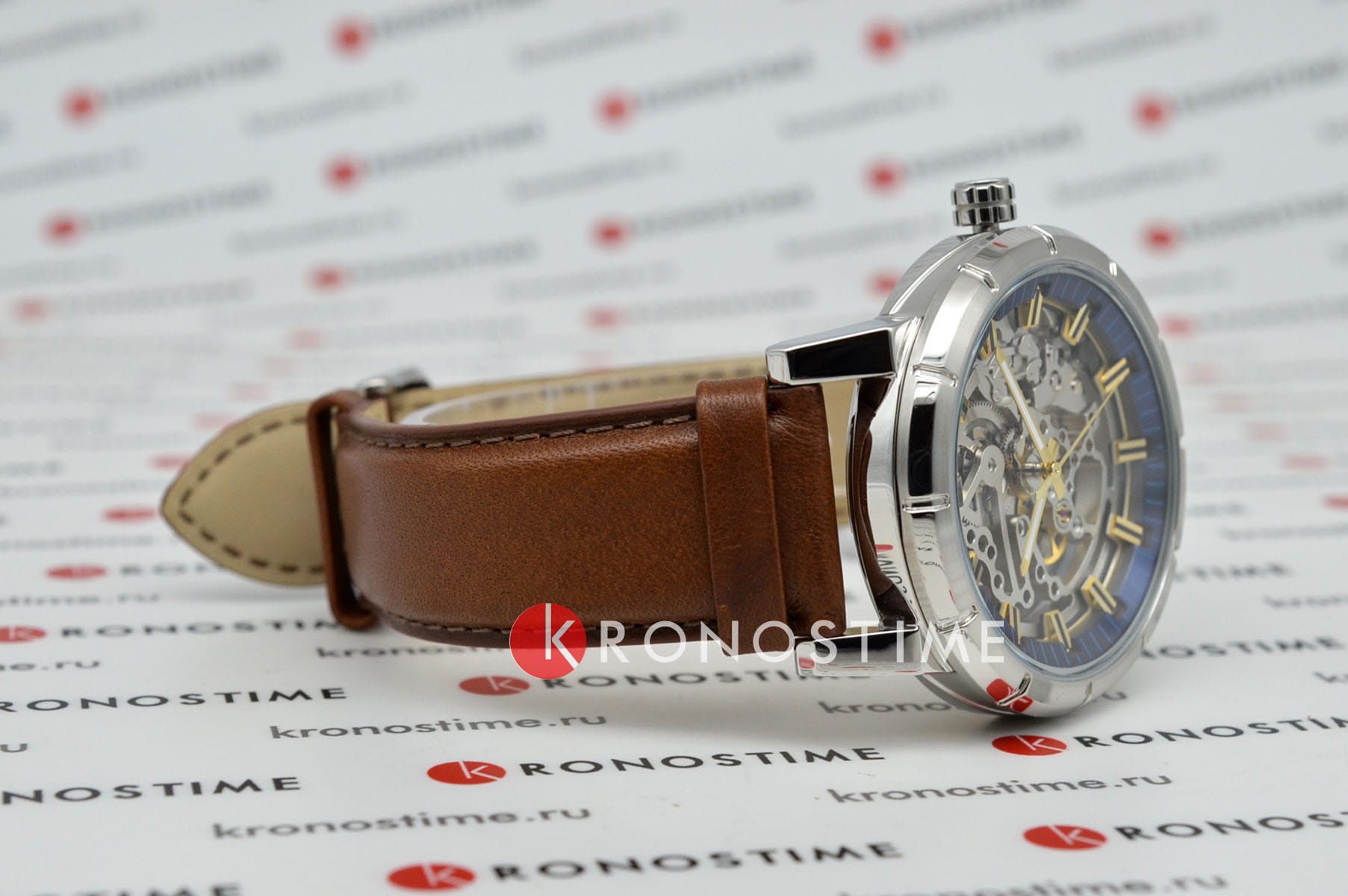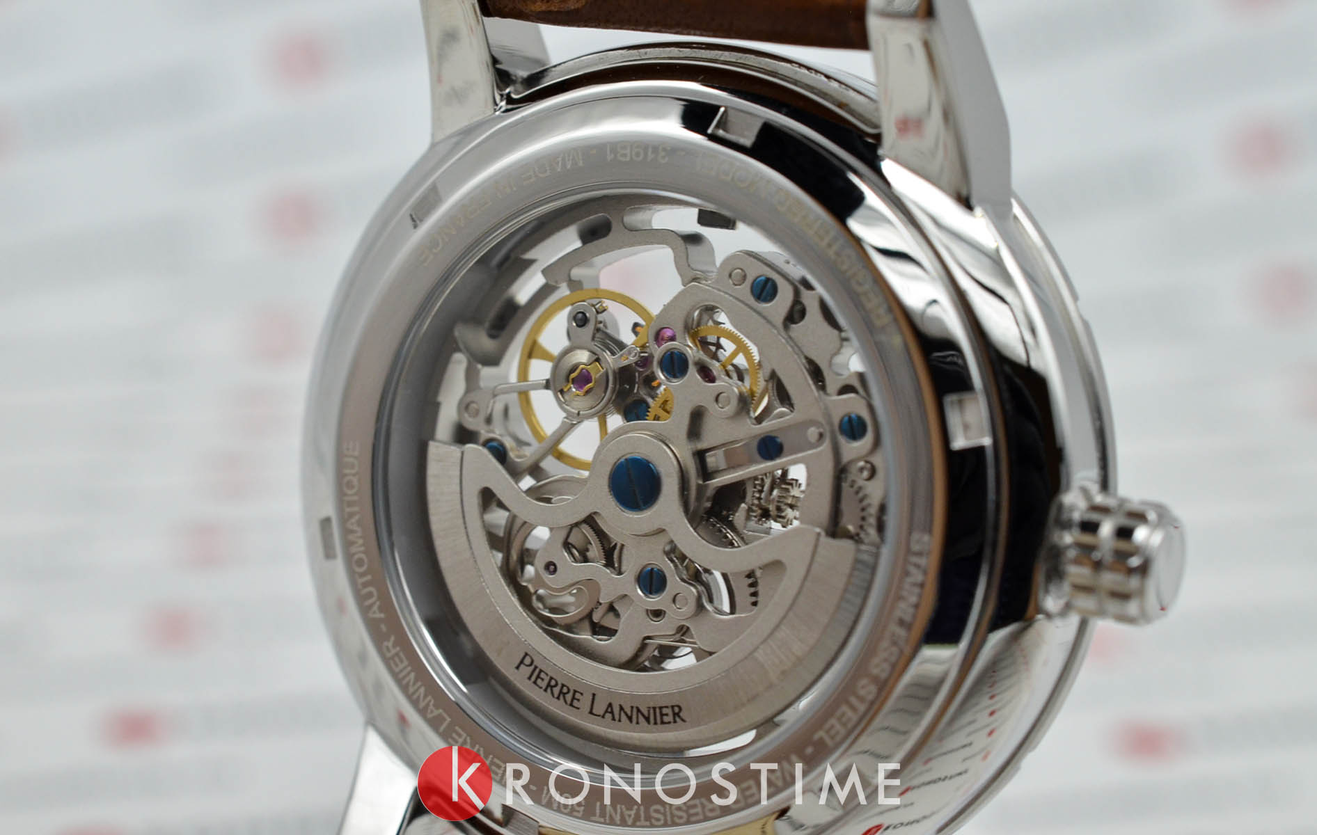 Мужские механические часы с автоподзаводом Pierre Lannier Automatic 319B164. Минеральное стеклоМинеральное стеклоМинеральное стекло представляет собой искусственно выращенный минерал кварца. Такое стекло отличается особой устойчивостью к повреждениям и царапинам. Уступает по некоторым качествам сапфировому стеклу. устойчивое к мелким механическим повреждениям. Центральные часовая, минутная и секундная стрелки. Корпус выполнен из нержавеющей стали. Водостойкость: 50 метров, позволит защитить корпус от случайных брызг или капель дождя. Кожаный ремешок на стандартной застёжке. Стрелки с люминесцентным покрытиемЛюминесцентное покрытиеПозволяет считывать показания времени в темноте. Производители наносят на стрелки, часовые индексы, безель или поверхность циферблата светонакопительный состав, дающий холодное свечение.. Синий скелетонизированный циферблат. Прозрачная задняя крышка.