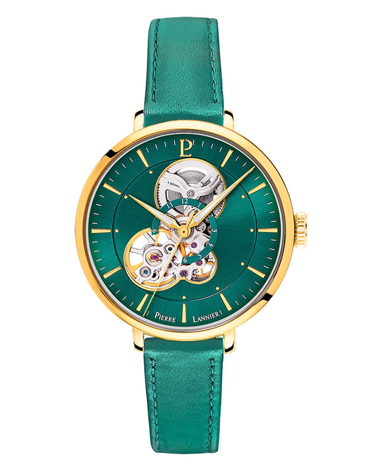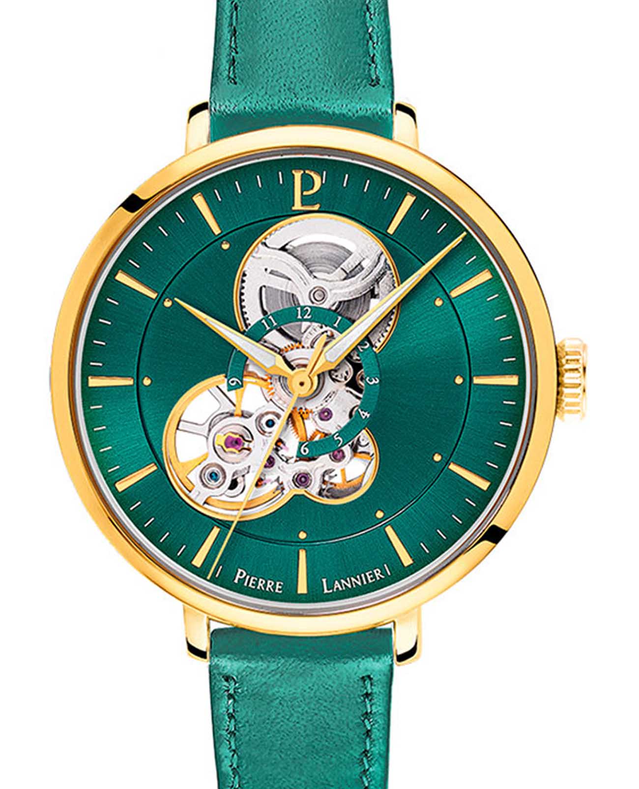 Женские механические часы с автоподзаводом Pierre Lannier Melodie 349A577. Минеральное стеклоМинеральное стеклоМинеральное стекло представляет собой искусственно выращенный минерал кварца. Такое стекло отличается особой устойчивостью к повреждениям и царапинам. Уступает по некоторым качествам сапфировому стеклу. устойчивое к мелким механическим повреждениям. Корпус выполнен из нержавеющей стали с IP-покрытиемIP-покрытиеМетод ионного напыления. Демонстрирует повышенную устойчивость к истиранию, окислению и химическим веществам. Под воздействием высокого давления и температуры около 1500°C молекулы металла надёжно соединяются с частицами корпуса часов.. Центральные часовая, минутная и секундная стрелки. Красный скелетонизированный циферблат. Стрелки с люминесцентным покрытиемЛюминесцентное покрытиеПозволяет считывать показания времени в темноте. Производители наносят на стрелки, часовые индексы, безель или поверхность циферблата светонакопительный состав, дающий холодное свечение.. Класс водозащиты: 30 метров, позволит защитить корпус от случайных брызг или капель дождя. Кожаный ремешок на стандартной застёжке.
