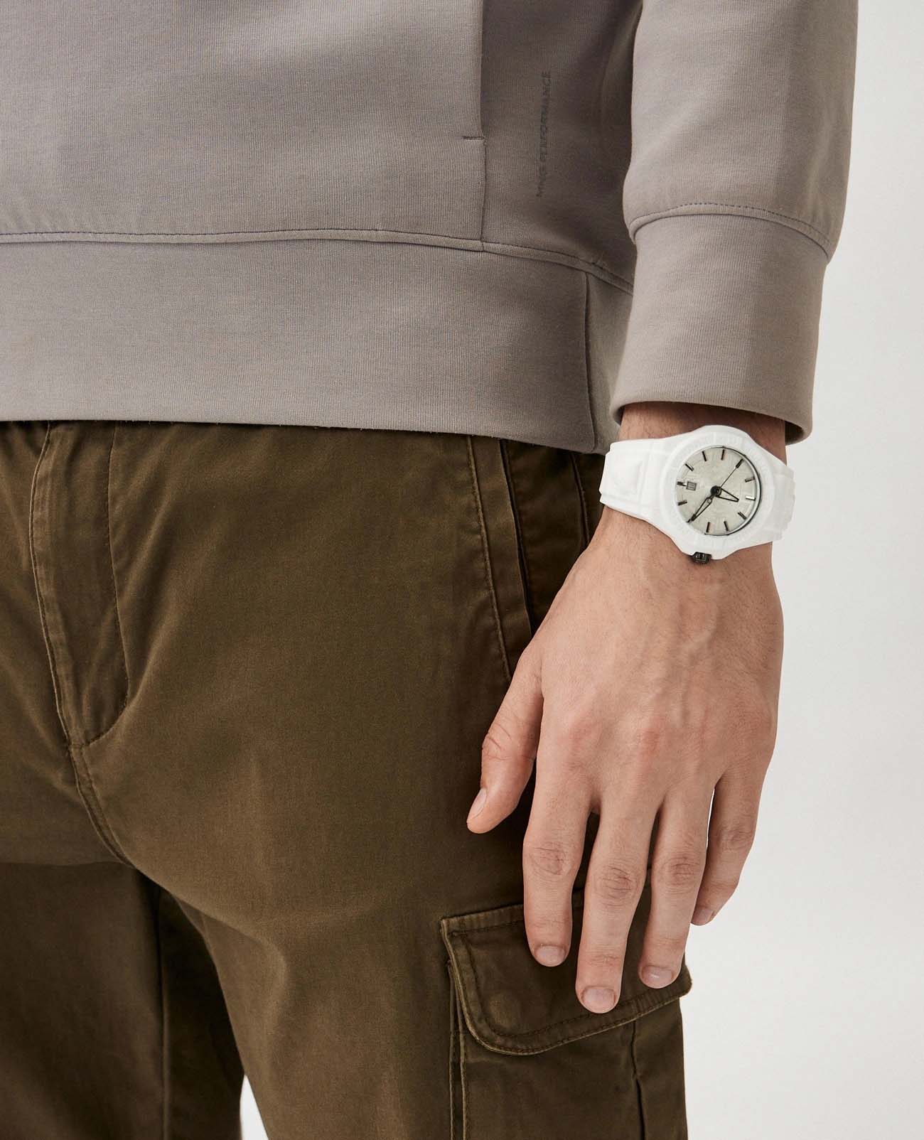 Ремешок выполнен из силикона и застёгивается на обычную застёжку, что делает его удобным и не вызывающим дискомфорта. Окошко, показывающее дату, расположено в положении «шесть часов», так что вы всегда будете в курсе текущего числа.