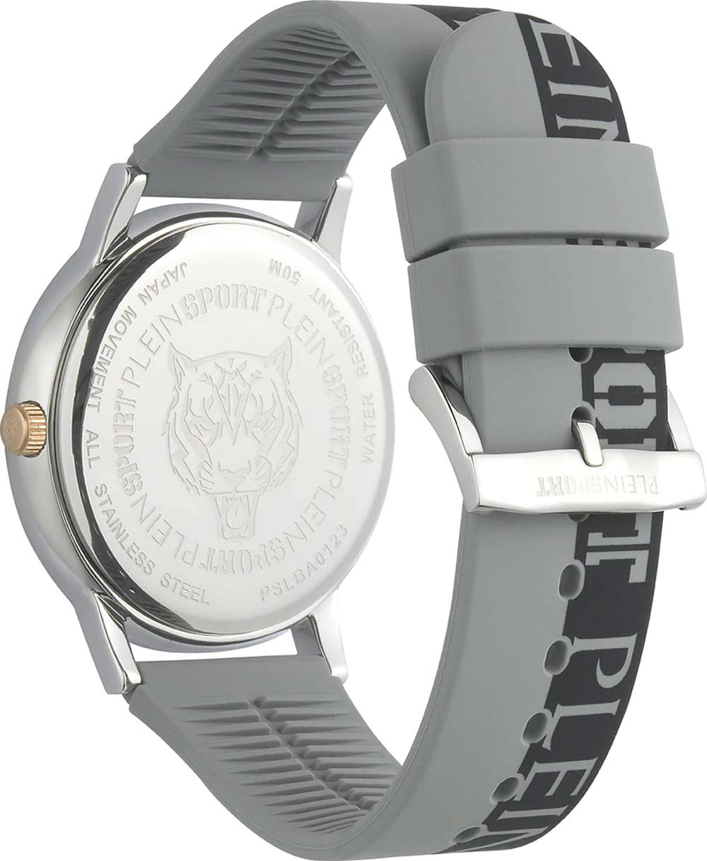 Немецкие мужские кварцевые часы Plein Sport Legend PSLBA0123 с минеральным стекломМинеральное стеклоМинеральное стекло представляет собой искусственно выращенный минерал кварца. Такое стекло отличается особой устойчивостью к повреждениям и царапинам. Уступает по некоторым качествам сапфировому стеклу., кварцевый механизм с высокой точностью. Класс водозащиты: 50 метров, позволит защитить корпус от случайных брызг или капель дождя. Корпус часов изготовлен из стали. Стрелки и метки с люминесцентным покрытиемЛюминесцентное покрытиеПозволяет считывать показания времени в темноте. Производители наносят на стрелки, часовые индексы, безель или поверхность циферблата светонакопительный состав, дающий холодное свечение.. Силиконовый ремешок на стандартной застёжке.