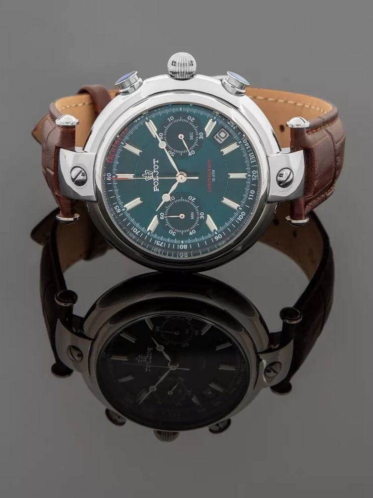 Poljot 6S21.961227 “Baikal” — элегантные кварцевые мужские часы, в которых классическая строгость сочетается с выразительным российским характером. Корпус из нержавеющей стали с крупными декоративными ушками придаёт модели солидность и узнаваемость, а глубокий циферблат с контрастными стрелками и индексами с люминесцентным покрытиемЛюминесцентное покрытиеПозволяет считывать показания времени в темноте. Производители наносят на стрелки, часовые индексы, безель или поверхность циферблата светонакопительный состав, дающий холодное свечение. подчёркивает точность и функциональность. Два дополнительных счётчика хронографаХронографФункция позволяет измерять отрезки времени с особой точностью: часы, минуты, секунды. Верным признаком хронографа является наличие на циферблате 3 дополнительных окошек-счётчиков. обеспечивают измерение времени с высокой точностью, а окно даты добавляет практичности. Прочное минеральное стеклоМинеральное стеклоМинеральное стекло представляет собой искусственно выращенный минерал кварца. Такое стекло отличается особой устойчивостью к повреждениям и царапинам. Уступает по некоторым качествам сапфировому стеклу. защищает циферблат от царапин, а ремешок из натуральной кожи с классической пряжкой гарантирует комфорт и надёжную фиксацию на запястье. Poljot “Baikal” — это сочетание традиций, надёжности и уверенного стиля, созданное для мужчин, ценящих точность и благородную сдержанность.