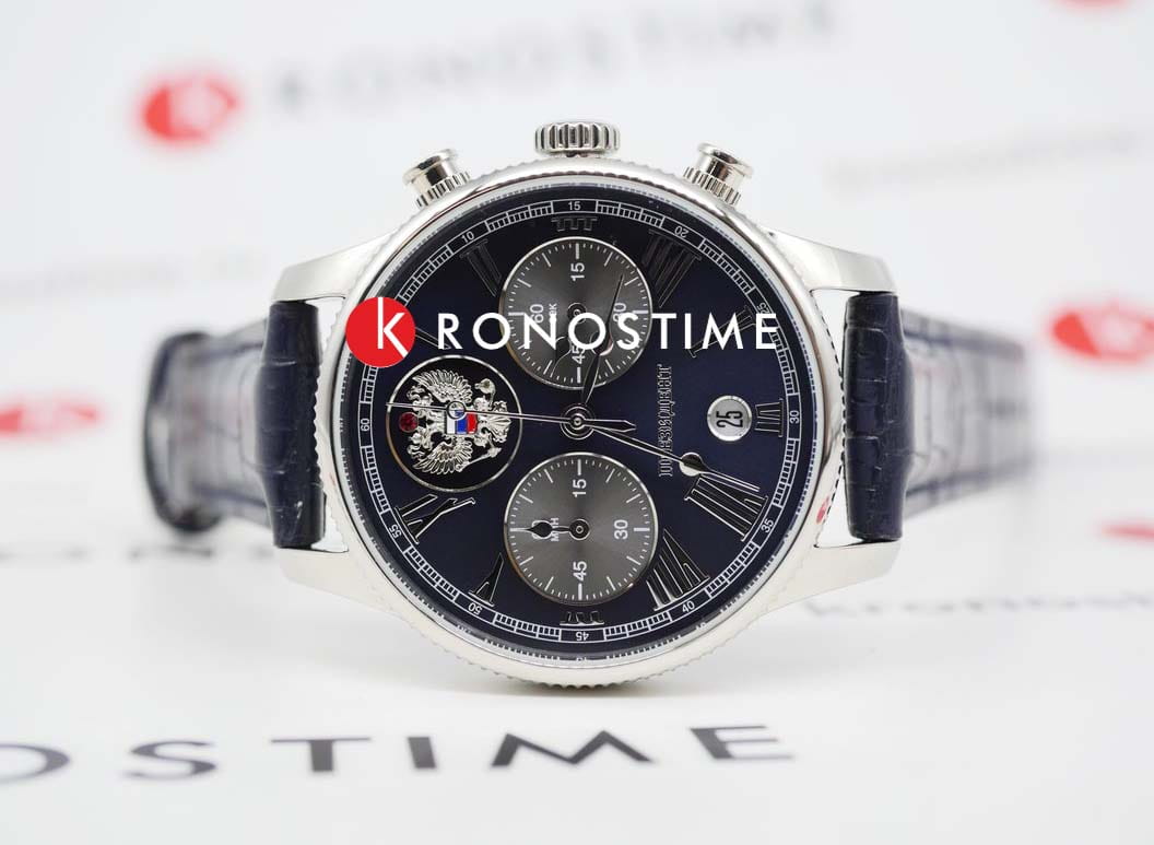 Российские часы Русское время 3520418 c хронографомХронографФункция позволяет измерять отрезки времени с особой точностью: часы, минуты, секунды. Верным признаком хронографа является наличие на циферблате 3 дополнительных окошек-счётчиков. оснащены кварцевый механизм, что обеспечивает исключительную надежность и точность хода. Корпус часов выполнен из стали, что придает ему долговечность и устойчивость к внешним воздействиям.Сапфировое стеклоСапфировое стеклоПрочный и надёжный материал из кристалла сапфира синтетического происхождения, характеризующийся особой твёрдостью и устойчивостью к царапинам и повреждениям. устойчиво к мелким механическим повреждениям, что гарантирует долговечность и сохранение первоначального вида.