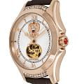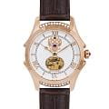 , что придаёт ей благородный внешний вид и устойчивость к царапинам. Циферблат белого цвета с открытым окном баланса и инкрустирован кристаллами Swarovski, подчёркивающими изысканность и внимание к деталям. Защиту циферблата обеспечивает минеральное стеклоМинеральное стеклоМинеральное стекло представляет собой искусственно выращенный минерал кварца. Такое стекло отличается особой устойчивостью к повреждениям и царапинам. Уступает по некоторым качествам сапфировому стеклу., устойчивое к повседневным нагрузкам и обеспечивающее хорошую прозрачность. Часы оснащены механизмом с автоподзаводом, разработанным японской компанией Miyota, что гарантирует точность и надёжность. Кожаный ремешок шириной 18 мм дополнен стандартной застёжкой, обеспечивающей комфорт и удобство при ношении. Водонепроницаемость позволяет использовать часы в условиях случайных брызг или капель дождя. Эти часы станут универсальным аксессуаром для тех, кто ценит сочетание стиля, качества и элегантности — идеальный выбор для женщин, которые следят за своим имиджем и предпочитают выделяться.