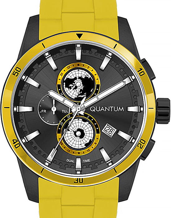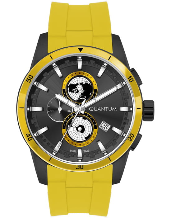 Мужские часы c хронографомХронографФункция позволяет измерять отрезки времени с особой точностью: часы, минуты, секунды. Верным признаком хронографа является наличие на циферблате 3 дополнительных окошек-счётчиков. Quantum Adrenaline ADG991.654, кварцевый механизм с высокой точностью. Минеральное стеклоМинеральное стеклоМинеральное стекло представляет собой искусственно выращенный минерал кварца. Такое стекло отличается особой устойчивостью к повреждениям и царапинам. Уступает по некоторым качествам сапфировому стеклу. устойчивое к появлению царапин, обладающее высокой прозрачностью. Класс водозащиты: 100 метров, позволит плавать, нырять и заниматься другими водными видами спорта. Корпус часов изготовлен из стали с IP-покрытиемIP-покрытиеМетод ионного напыления. Демонстрирует повышенную устойчивость к истиранию, окислению и химическим веществам. Под воздействием высокого давления и температуры около 1500°C молекулы металла надёжно соединяются с частицами корпуса часов.. Силиконовый ремешок. Окошко даты находится в положении 4 часов. Стрелки и метки с люминесцентным покрытиемЛюминесцентное покрытиеПозволяет считывать показания времени в темноте. Производители наносят на стрелки, часовые индексы, безель или поверхность циферблата светонакопительный состав, дающий холодное свечение..