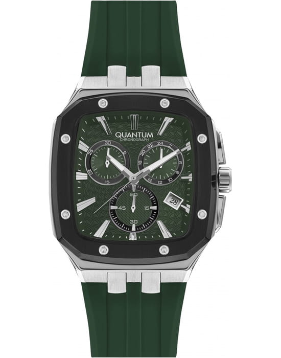 Мужские наручные часы-хронографХронографФункция позволяет измерять отрезки времени с особой точностью: часы, минуты, секунды. Верным признаком хронографа является наличие на циферблате 3 дополнительных окошек-счётчиков. Quantum HNG1033.375, кварцевый механизм с высокой точностью. Минеральное стеклоМинеральное стеклоМинеральное стекло представляет собой искусственно выращенный минерал кварца. Такое стекло отличается особой устойчивостью к повреждениям и царапинам. Уступает по некоторым качествам сапфировому стеклу. устойчивое к появлению царапин, обладающее высокой прозрачностью. Класс водозащиты: 100 метров, позволит плавать, нырять и заниматься другими водными видами спорта. Корпус часов изготовлен из нержавеющей стали. Стрелки с люминесцентным покрытиемЛюминесцентное покрытиеПозволяет считывать показания времени в темноте. Производители наносят на стрелки, часовые индексы, безель или поверхность циферблата светонакопительный состав, дающий холодное свечение.. Каучуковый ремешок.