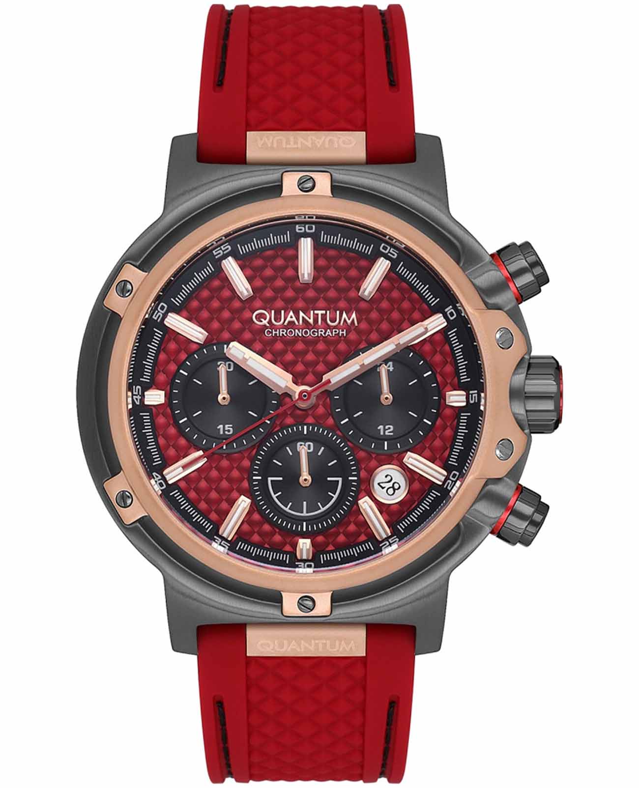 Мужские наручные часы-хронографХронографФункция позволяет измерять отрезки времени с особой точностью: часы, минуты, секунды. Верным признаком хронографа является наличие на циферблате 3 дополнительных окошек-счётчиков. Quantum HNG956.888, кварцевый механизм с высокой точностью. Минеральное стеклоМинеральное стеклоМинеральное стекло представляет собой искусственно выращенный минерал кварца. Такое стекло отличается особой устойчивостью к повреждениям и царапинам. Уступает по некоторым качествам сапфировому стеклу. устойчивое к появлению царапин, обладающее высокой прозрачностью. Класс водозащиты: 50 метров, позволит защитить корпус от случайных брызг или капель дождя. Стрелки с люминесцентным покрытиемЛюминесцентное покрытиеПозволяет считывать показания времени в темноте. Производители наносят на стрелки, часовые индексы, безель или поверхность циферблата светонакопительный состав, дающий холодное свечение.. Корпус часов изготовлен из нержавеющей стали с IP-покрытиемIP-покрытиеМетод ионного напыления. Демонстрирует повышенную устойчивость к истиранию, окислению и химическим веществам. Под воздействием высокого давления и температуры около 1500°C молекулы металла надёжно соединяются с частицами корпуса часов.. Силиконовый ремешок на стандартной застёжке. Окошко даты находится в положении между 4 и 5 часов.
