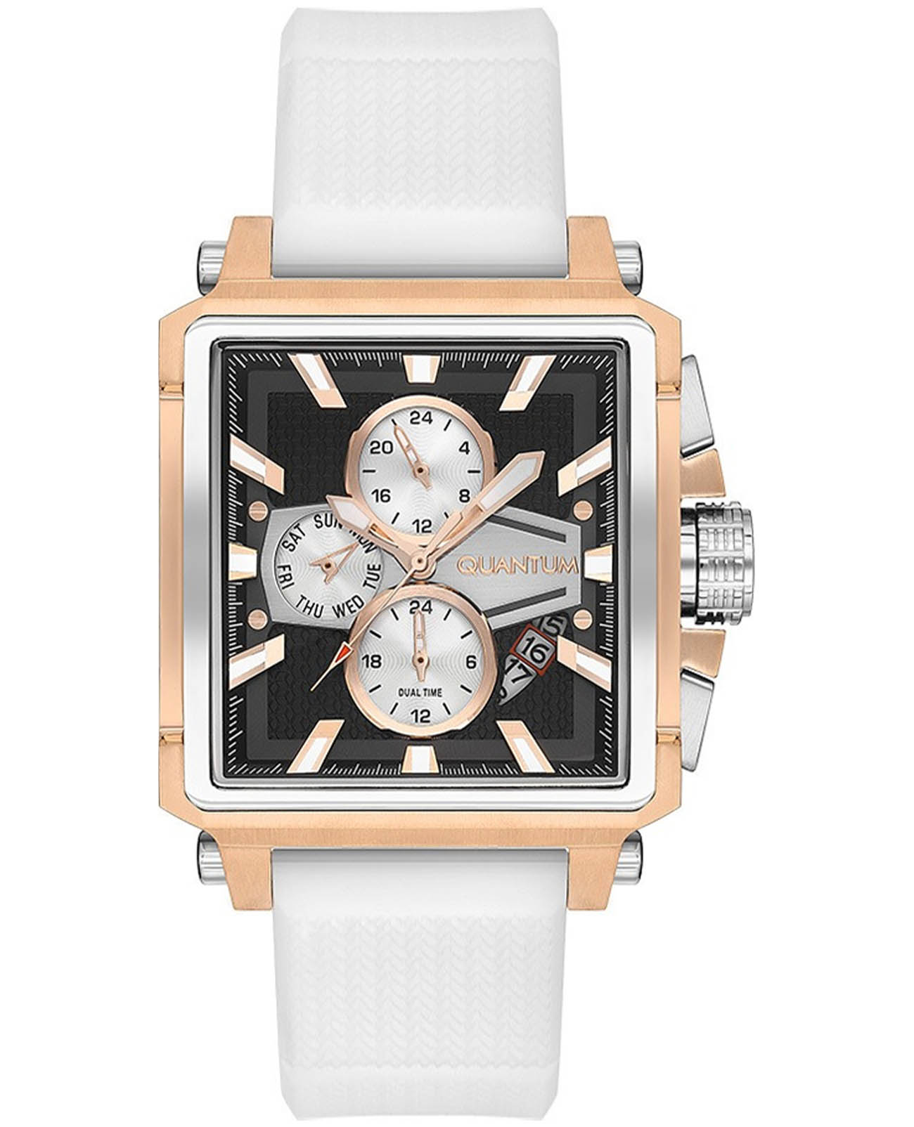Мужские наручные часы Quantum HNG969.461, кварцевый механизм с высокой точностью. Минеральное стеклоМинеральное стеклоМинеральное стекло представляет собой искусственно выращенный минерал кварца. Такое стекло отличается особой устойчивостью к повреждениям и царапинам. Уступает по некоторым качествам сапфировому стеклу. устойчивое к появлению царапин, обладающее высокой прозрачностью. Класс водозащиты: 100 метров, позволит плавать, нырять и заниматься другими водными видами спорта. Стрелки с люминесцентным покрытиемЛюминесцентное покрытиеПозволяет считывать показания времени в темноте. Производители наносят на стрелки, часовые индексы, безель или поверхность циферблата светонакопительный состав, дающий холодное свечение.. Корпус часов изготовлен из нержавеющей стали с IP-покрытиемIP-покрытиеМетод ионного напыления. Демонстрирует повышенную устойчивость к истиранию, окислению и химическим веществам. Под воздействием высокого давления и температуры около 1500°C молекулы металла надёжно соединяются с частицами корпуса часов.. Силиконовый ремешок на стандартной застёжке. Окошко даты находится в положении между 4 и 5 часов.