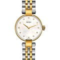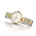 Премиальная модель будет элегантным дополнением как к деловому костюму, как и к повседневному наряду. Компактный перламутровый циферблат декорирован 12 сияющими бриллиантами в 0,038 карат, акцент сделан на необычных тонких ушках, соединяющих браслет и корпус. Высокоточный кварцевый механизм ETA 280.002. Частичное PVD-покрытиеPVDУльтратонкое покрытие наносится в технике вакуумного напыления, сочетает в себе нитрид титана особой прочности со слоем золота или оксида хрома. Несёт в себе декоративную или защитную функцию. цвета жёлтого золота. Выпуклое сапфировое стекло Водонепроницаемость 50 метров. . Диаметр корпуса: 27 мм.