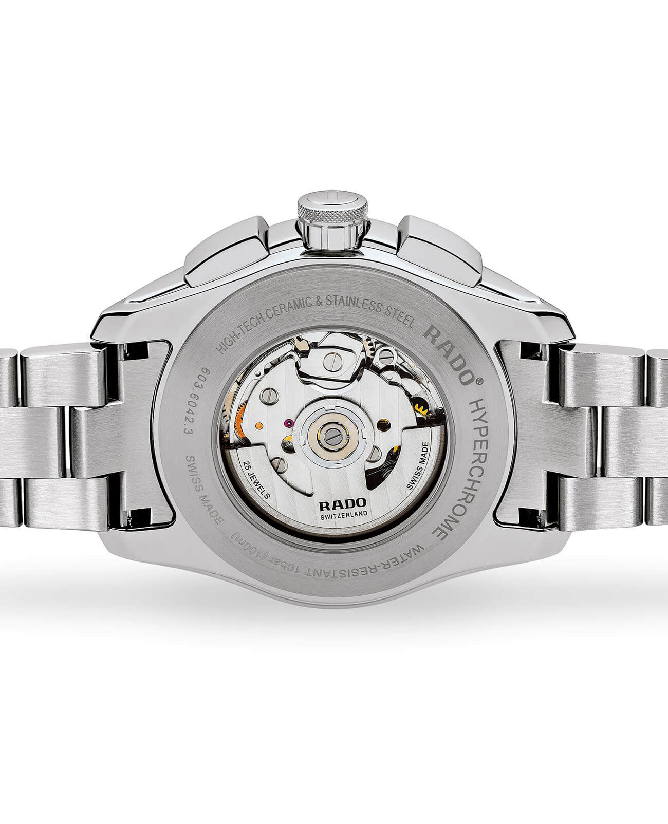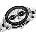 Классический хронографХронографФункция позволяет измерять отрезки времени с особой точностью: часы, минуты, секунды. Верным признаком хронографа является наличие на циферблате 3 дополнительных окошек-счётчиков. с элементами спортивного дизайна идеально подойдёт к образу солидного и делового мужчины. Винтажным элементом стал оригинальный дизайн «panda-style». Серебристо-чёрная расцветка позволяет носить часы при любых обстоятельствах. Модель оснащена швейцарским автоматическим механизмом ETA A05.H21, запас хода которого увеличен до 54 часов. Скелетонизированная задняя крышка корпуса. Стекло из сапфира с антибликовым покрытием. Корпус и браслет из стали 316L с антикоррозионными свойствами. Чёрный безельБезельВнешний ободок, закрепляющий стекло. В спортивных часах так называется поворотное кольцо с делениями на циферблате, выполняет роль таймера – замеряет отрезки времени на шкале. Неподвижный безель – элемент декора. Однонаправленно вращающийся безель на дайверских часах позволяет фиксировать моменты погружения и выныривания на поверхность. из высокотехнологичной керамикиВысокотехнологичная керамикаИнновационный запатентованный Rado материал с гладкой или матовой поверхностью. Керамика за счёт кристаллической структуры обладает повышенной устойчивостью от возникновения царапин. Материал способен принимать температуру тела человека, обеспечивая невероятный комфорт при ношении.. Люминесцентная подсветкаЛюминесцентное покрытиеПозволяет считывать показания времени в темноте. Производители наносят на стрелки, часовые индексы, безель или поверхность циферблата светонакопительный состав, дающий холодное свечение. стрелок. Водонепроницаемость 100 метров. Секундомер, отображение даты, шкала тахиметраТахиметрРазмеченная шкала, располагается на ободке или безеле часов. Тахиметр позволяет рассчитать скорость на определённом участке пути, расстояние измеряется в километрах или милях.. . Диаметр корпуса: 44 мм.