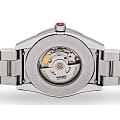 Премиальная модель стала современной интерпретацией знаковой линейки 1957 года, воплощающей ретро-элементы в новом формате. Синий циферблат в лаконичном исполнении дополнен фирменными логотипами. Часы выполнены из долговечной стали 316L, исключением стал фигурный безельБезельВнешний ободок, закрепляющий стекло. В спортивных часах так называется поворотное кольцо с делениями на циферблате, выполняет роль таймера – замеряет отрезки времени на шкале. Неподвижный безель – элемент декора. Однонаправленно вращающийся безель на дайверских часах позволяет фиксировать моменты погружения и выныривания на поверхность. из плазменной керамикиВысокотехнологичная плазменная керамикаИнновационный материал, технология запатентована. Выплавление керамики осуществляется в печи при 20 000 °C, белоснежный материал под воздействием ультравысокой температуры приобретает уникальный блеск, присущий металлам.. Автоматический калибр ETA C07.611 швейцарского производства с запасом хода на 80 часов. Для защиты циферблата и прозрачной задней крышки выбрано сапфировое стекло. Водонепроницаемость WR 50. Браслет с . Прямоугольная апертура даты. Диаметр корпуса: 41,8 мм.