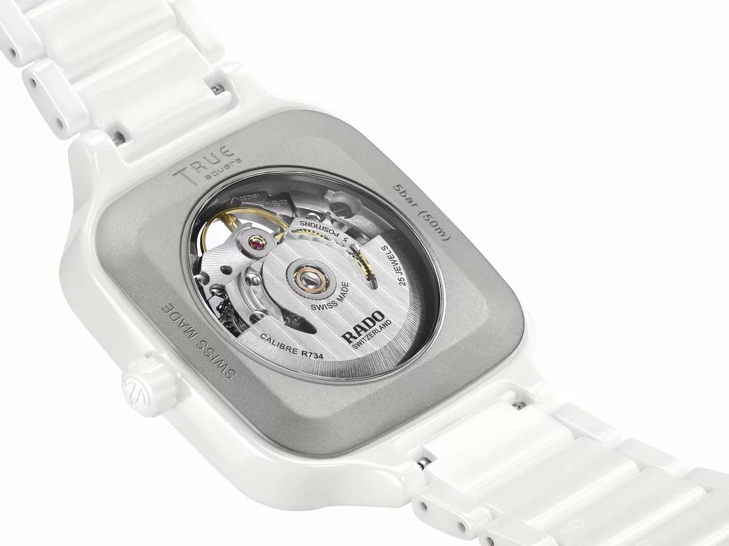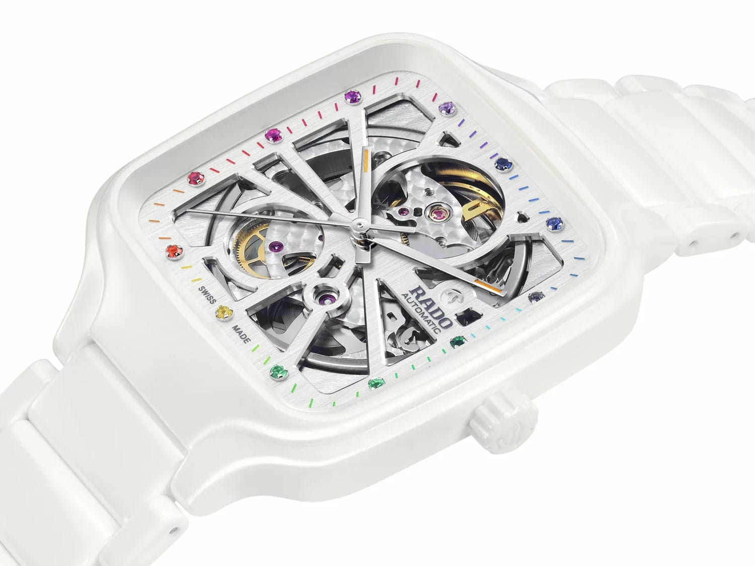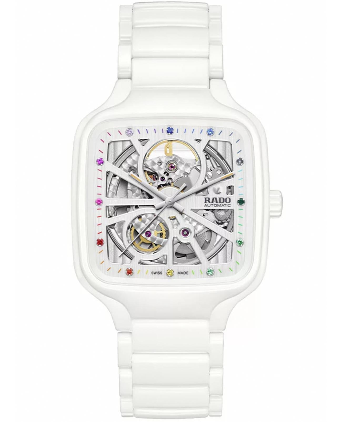 True Square - это новый взгляд на культовую форму Rado. Первые часы True Square, изготовленные с использованием моноблочного высокотехнологичного керамическогоВысокотехнологичная керамикаИнновационный запатентованный Rado материал с гладкой или матовой поверхностью. Керамика за счёт кристаллической структуры обладает повышенной устойчивостью от возникновения царапин. Материал способен принимать температуру тела человека, обеспечивая невероятный комфорт при ношении. корпуса квадратной формы, легкие, устойчивые к царапинам и удобные в носке. Швейцарский автоматический механизм отличается резервом хода на 80 часов. Стрелки и метки дополнены ярким люминесцентным покрытиемЛюминесцентное покрытиеПозволяет считывать показания времени в темноте. Производители наносят на стрелки, часовые индексы, безель или поверхность циферблата светонакопительный состав, дающий холодное свечение.. Сапфировое стеклоСапфировое стеклоПрочный и надёжный материал из кристалла сапфира синтетического происхождения, характеризующийся особой твёрдостью и устойчивостью к царапинам и повреждениям. на 100% устойчиво к царапинам. Отличительный дизайн автоматического открытого сердца Rado True Square Automatic Open Heart - это воплощение будущих достижений. Керамический браслет на застёжке-бабочке с кнопкамиЗастёжка "бабочка"Такой вид застёжки дополняется предохранителями, помогающими избежать случайного раскрытия браслета. Обладают изящным исполнением. . Двенадцать цветных драгоценных камней добавляют нотку цвета и роскоши циферблату.