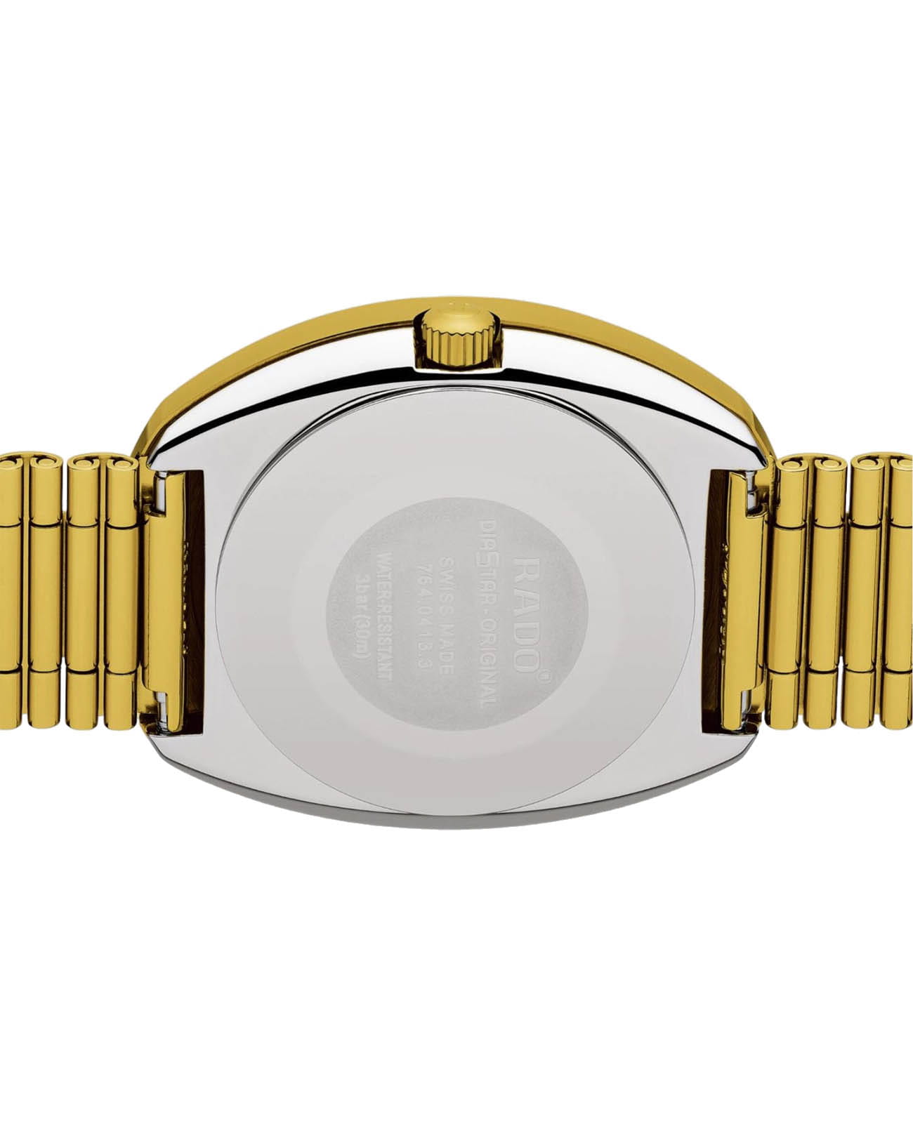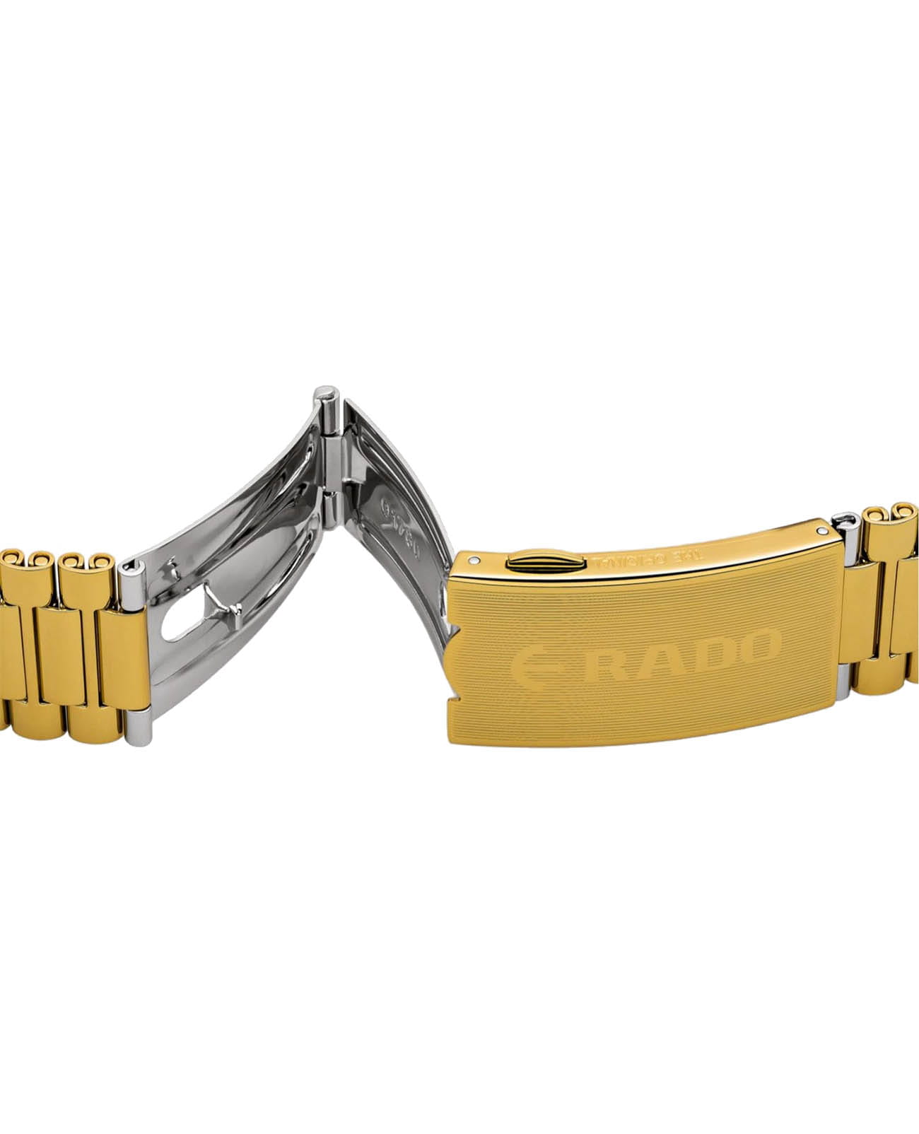 Мужские часы Rado The Original Automatic R12413073 с надёжным автоматическим механизмом. Корпус и браслет часов выполнены из нержавеющей стали c PVD-покрытиемPVDУльтратонкое покрытие наносится в технике вакуумного напыления, сочетает в себе нитрид титана особой прочности со слоем золота или оксида хрома. Несёт в себе декоративную или защитную функцию.. Стальной браслет на раскладной застёжкеРаскладная застёжкаТакой тип застёжки используется только на браслетах из металла. Она никогда не раскрывается полностью, происходит разделение на 2 и более частей. Раскладывающая застёжка снизит вероятность потери часов к минимуму.. Класс водозащиты: 30 метров, позволит защитить корпус от случайных брызг или капель дождя. Циферблат инкрустирован сапфирами. Окошко даты и дня недели находятся в положении 6 часов.