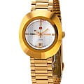 Женские механические швейцарские часы с автоподзаводом Rado The Original R12416034, кварцевый механизм с высокой точностью. Сапфировое стеклоСапфировое стеклоПрочный и надёжный материал из кристалла сапфира синтетического происхождения, характеризующийся особой твёрдостью и устойчивостью к царапинам и повреждениям. устойчивое к появлению царапин, обладающее высокой прозрачностью. Корпус и браслет часов выполнены из нержавеющей стали c PVD-покрытиемPVDУльтратонкое покрытие наносится в технике вакуумного напыления, сочетает в себе нитрид титана особой прочности со слоем золота или оксида хрома. Несёт в себе декоративную или защитную функцию.. Циферблат инкрустирован бриллиантами. Класс водозащиты: 30 метров, позволит защитить корпус от случайных брызг или капель дождя. Браслет на раскладной застёжкеРаскладная застёжкаТакой тип застёжки используется только на браслетах из металла. Она никогда не раскрывается полностью, происходит разделение на 2 и более частей. Раскладывающая застёжка снизит вероятность потери часов к минимуму..