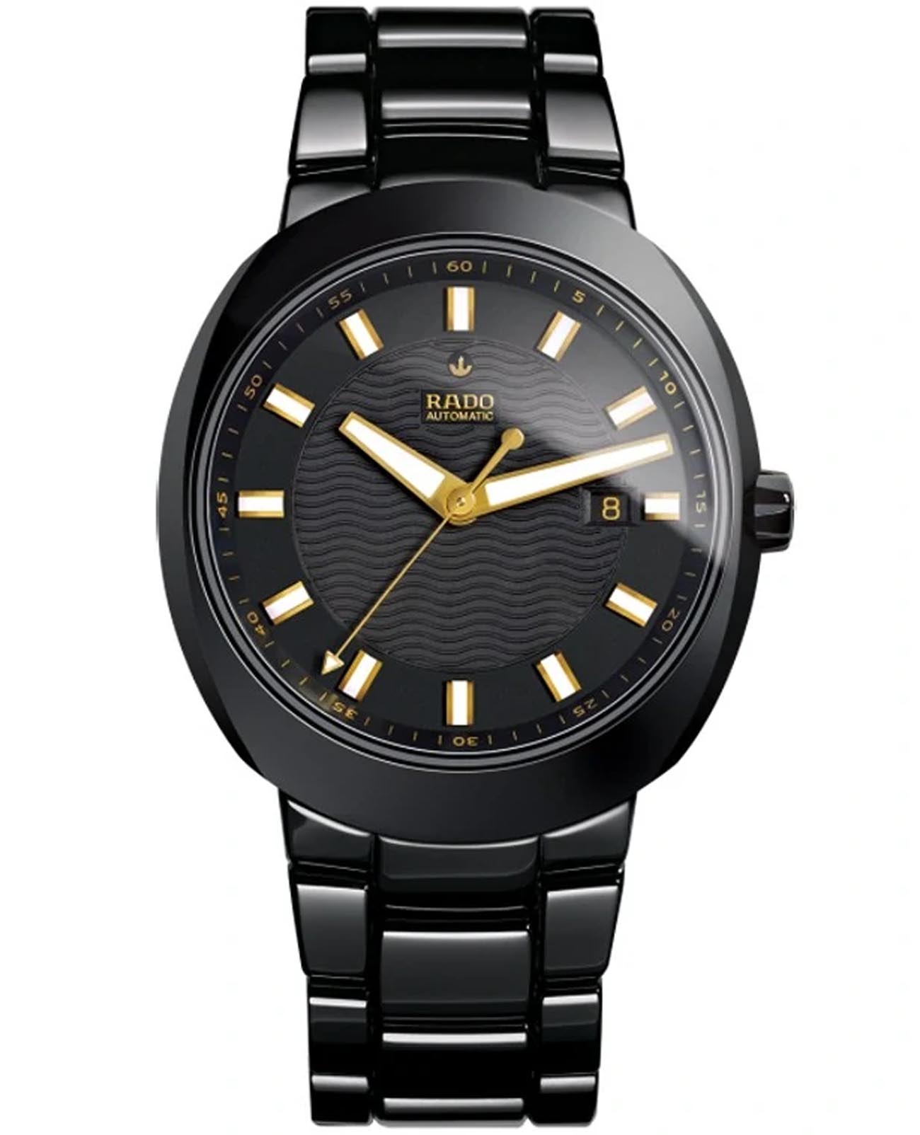 Мужские механические швейцарские часы с автоподзаводом Rado D-Star R15609162. Сапфировое стеклоСапфировое стеклоПрочный и надёжный материал из кристалла сапфира синтетического происхождения, характеризующийся особой твёрдостью и устойчивостью к царапинам и повреждениям. устойчивое к мелким механическим повреждениям. Корпус часов изготовлен из высокотехнологичной керамикиВысокотехнологичная керамикаИнновационный запатентованный Rado материал с гладкой или матовой поверхностью. Керамика за счёт кристаллической структуры обладает повышенной устойчивостью от возникновения царапин. Материал способен принимать температуру тела человека, обеспечивая невероятный комфорт при ношении.. Окошко даты находится в положении 3 часа. Стрелки с люминесцентным покрытиемЛюминесцентное покрытиеПозволяет считывать показания времени в темноте. Производители наносят на стрелки, часовые индексы, безель или поверхность циферблата светонакопительный состав, дающий холодное свечение.. Класс водозащиты: 100 метров, позволит плавать, нырять и заниматься другими водными видами спорта. Браслет из высокотехнологичной керамикиВысокотехнологичная керамикаИнновационный запатентованный Rado материал с гладкой или матовой поверхностью. Керамика за счёт кристаллической структуры обладает повышенной устойчивостью от возникновения царапин. Материал способен принимать температуру тела человека, обеспечивая невероятный комфорт при ношении. на раскладной застёжкеРаскладная застёжкаТакой тип застёжки используется только на браслетах из металла. Она никогда не раскрывается полностью, происходит разделение на 2 и более частей. Раскладывающая застёжка снизит вероятность потери часов к минимуму..