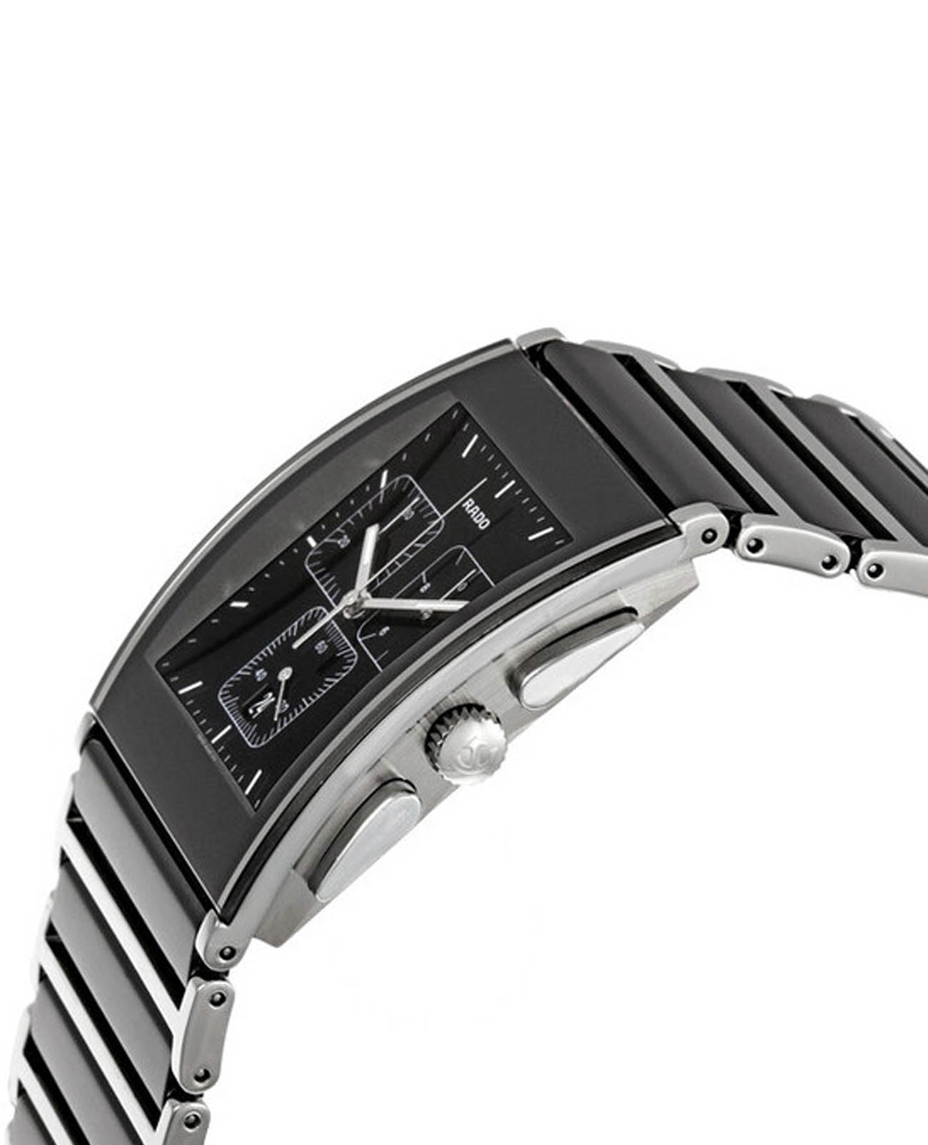 Швейцарские мужские часы-хронографХронографФункция позволяет измерять отрезки времени с особой точностью: часы, минуты, секунды. Верным признаком хронографа является наличие на циферблате 3 дополнительных окошек-счётчиков. Rado Integral R20849152, кварцевый механизм с высокой точностью. Сапфировое стеклоСапфировое стеклоПрочный и надёжный материал из кристалла сапфира синтетического происхождения, характеризующийся особой твёрдостью и устойчивостью к царапинам и повреждениям. устойчивое к появлению царапин, обладающее высокой прозрачностью. Корпус часов изготовлен из нержавеющей стали. Окошко даты находится в положении 6 часов. "}. Стрелки и метки с люминесцентным покрытиемЛюминесцентное покрытиеПозволяет считывать показания времени в темноте. Производители наносят на стрелки, часовые индексы, безель или поверхность циферблата светонакопительный состав, дающий холодное свечение.. Класс водозащиты: 30 метров, позволит защитить корпус от случайных брызг или капель дождя. Браслет из нержавеющей стали и CeramosCeramosМатериал являет собой инновационное сочетание высокотехнологичной керамики и сплава металла. Он объединяет керамическую устойчивость к царапинам и металлический роскошный блеск. на раскладной застёжкеРаскладная застёжкаТакой тип застёжки используется только на браслетах из металла. Она никогда не раскрывается полностью, происходит разделение на 2 и более частей. Раскладывающая застёжка снизит вероятность потери часов к минимуму..