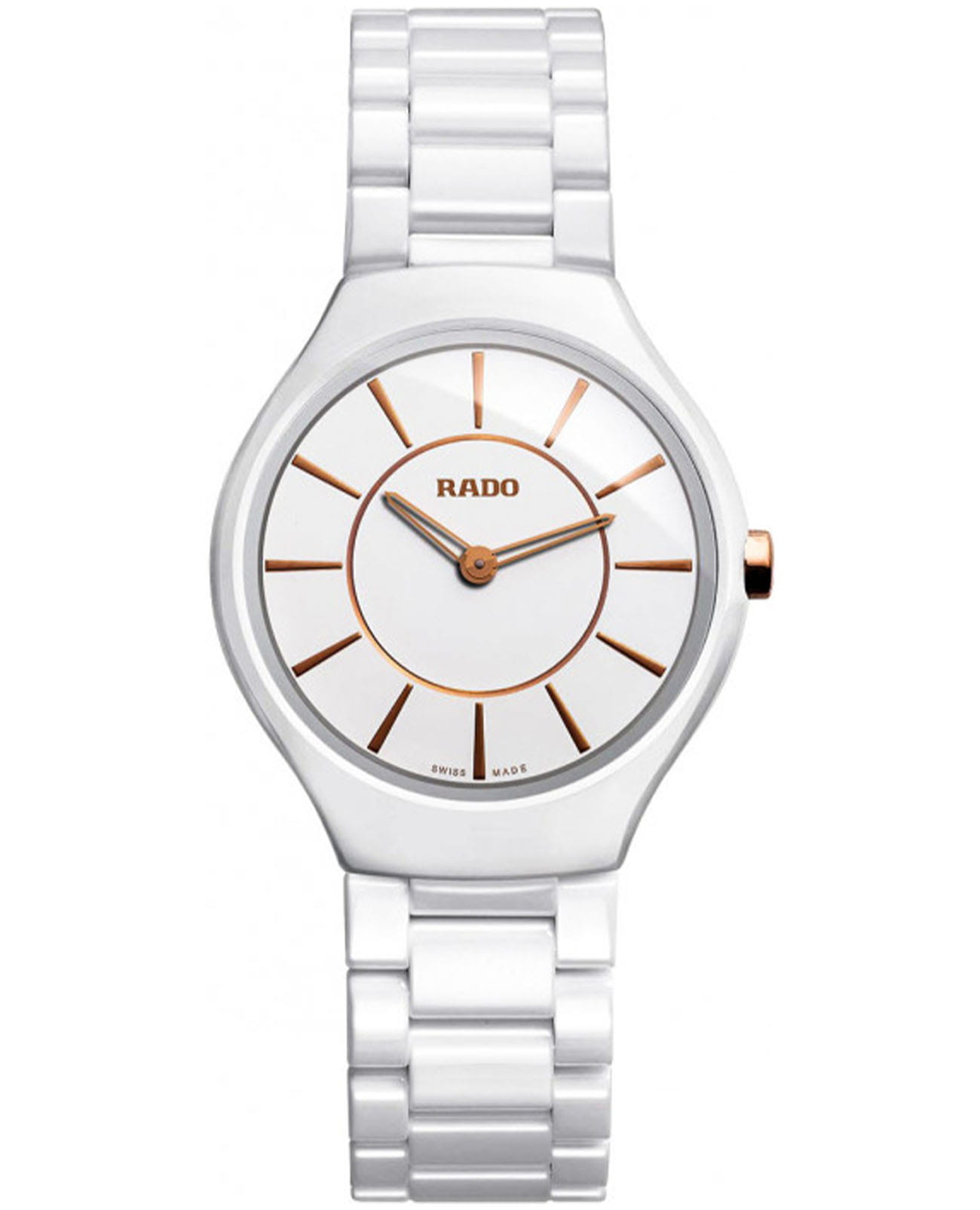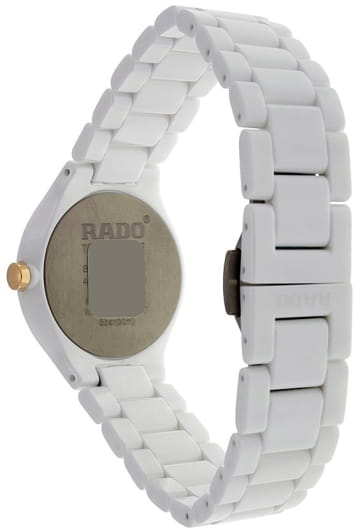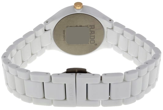 Швейцарские женские Rado True Thinline R27958102, кварцевый механизм с высокой точностью. Сапфировое стеклоСапфировое стеклоПрочный и надёжный материал из кристалла сапфира синтетического происхождения, характеризующийся особой твёрдостью и устойчивостью к царапинам и повреждениям. устойчивое к появлению царапин, обладающее высокой прозрачностью. Корпус часов изготовлен из высокотехнологичной керамикиВысокотехнологичная керамикаИнновационный запатентованный Rado материал с гладкой или матовой поверхностью. Керамика за счёт кристаллической структуры обладает повышенной устойчивостью от возникновения царапин. Материал способен принимать температуру тела человека, обеспечивая невероятный комфорт при ношении.. Класс водозащиты: 30 метров, позволит защитить корпус от случайных брызг или капель дождя. Керамический браслет на застёжке-бабочке с кнопкамиЗастёжка "бабочка"Такой вид застёжки дополняется предохранителями, помогающими избежать случайного раскрытия браслета. Обладают изящным исполнением. .