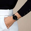 Циферблат защищён сапфировым стекломСапфировое стеклоПрочный и надёжный материал из кристалла сапфира синтетического происхождения, характеризующийся особой твёрдостью и устойчивостью к царапинам и повреждениям., известным своей непревзойденной твёрдостью и устойчивостью к царапинам, что гарантирует долговечность и сохранность внешнего вида часов. Браслет изготовлен из нержавеющей стали и высокотехнологичной плазменной керамикиВысокотехнологичная плазменная керамикаИнновационный материал, технология запатентована. Выплавление керамики осуществляется в печи при 20 000 °C, белоснежный материал под воздействием ультравысокой температуры приобретает уникальный блеск, присущий металлам., что придаёт аксессуару дополнительную прочность и лёгкость. Водонепроницаемость до 50 метров позволяет использовать часы в повседневной жизни без опасений за их состояние. Удобная обеспечивает надёжное крепление браслета на руке. Дополнительным удобством является окошко даты, расположенное на циферблате, позволяющее всегда оставаться в курсе текущего дня месяца.