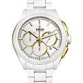 Мужские механические швейцарские часы- хронографХронографФункция позволяет измерять отрезки времени с особой точностью: часы, минуты, секунды. Верным признаком хронографа является наличие на циферблате 3 дополнительных окошек-счётчиков. с автоподзаводом Rado HyperChrome Automatic Chronograph R32037012. Сапфировое стеклоСапфировое стеклоПрочный и надёжный материал из кристалла сапфира синтетического происхождения, характеризующийся особой твёрдостью и устойчивостью к царапинам и повреждениям. устойчивое к мелким механическим повреждениям. Корпус часов изготовлен из нержавеющей стали с PVD-покрытиемPVDУльтратонкое покрытие наносится в технике вакуумного напыления, сочетает в себе нитрид титана особой прочности со слоем золота или оксида хрома. Несёт в себе декоративную или защитную функцию. и высокотехнологичной керамикиВысокотехнологичная керамикаИнновационный запатентованный Rado материал с гладкой или матовой поверхностью. Керамика за счёт кристаллической структуры обладает повышенной устойчивостью от возникновения царапин. Материал способен принимать температуру тела человека, обеспечивая невероятный комфорт при ношении.. Окошко даты находится в положении между 4 и 5 часами. Стрелки с люминесцентным покрытиемЛюминесцентное покрытиеПозволяет считывать показания времени в темноте. Производители наносят на стрелки, часовые индексы, безель или поверхность циферблата светонакопительный состав, дающий холодное свечение.. Класс водозащиты: 100 метров, позволит плавать, нырять и заниматься другими водными видами спорта. Браслет из высокотехнологичной керамикиВысокотехнологичная керамикаИнновационный запатентованный Rado материал с гладкой или матовой поверхностью. Керамика за счёт кристаллической структуры обладает повышенной устойчивостью от возникновения царапин. Материал способен принимать температуру тела человека, обеспечивая невероятный комфорт при ношении. на раскладной застёжкеРаскладная застёжкаТакой тип застёжки используется только на браслетах из металла. Она никогда не раскрывается полностью, происходит разделение на 2 и более частей. Раскладывающая застёжка снизит вероятность потери часов к минимуму..